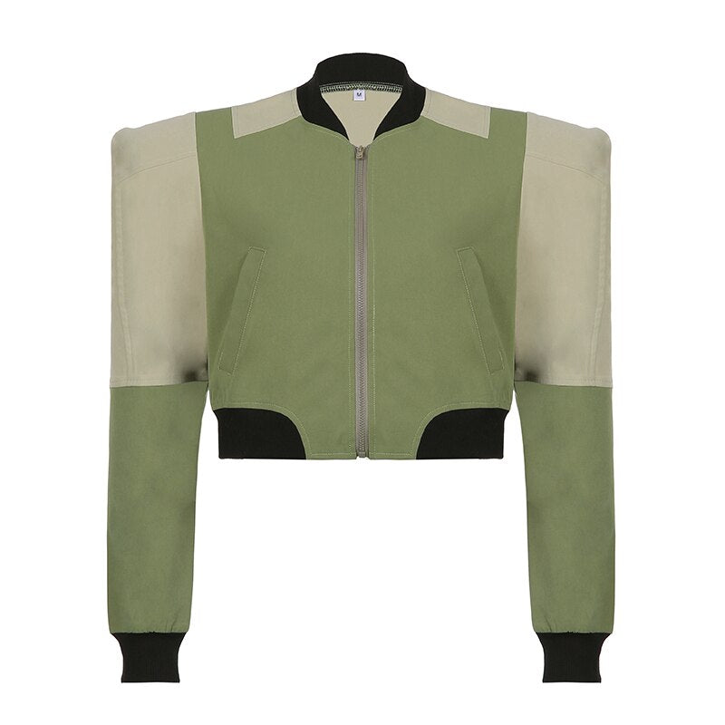BIIKPIIK Fashionable High Street Women's Jackets Stitching Padded Shoulder Long Sleeve Fall Winter Clothing Casual Biker Coats