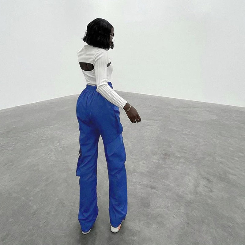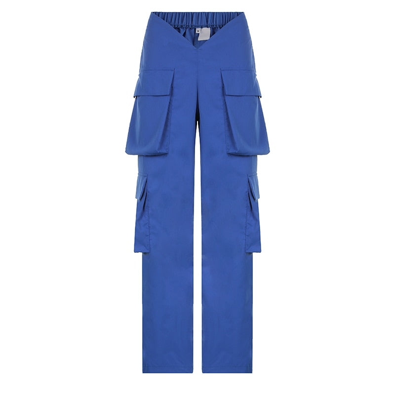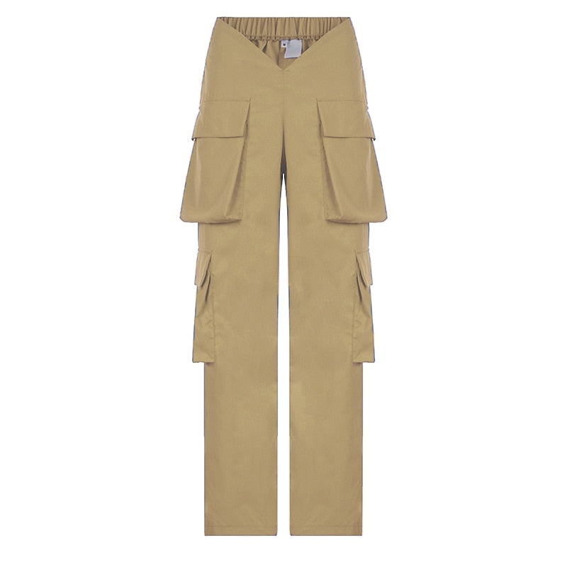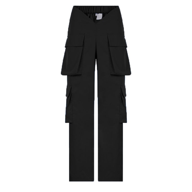 BIIKPIIK High Wasit Solid Pockets V Wasit Loose Cargo Pants Overalls Female Streetwear Lounge Straight Trousers Flat Woven Pant