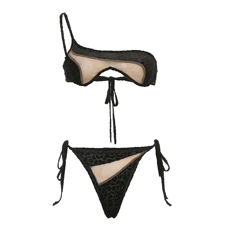 BIIKPIIK Sexy Bikini Low Waist Swimsuit Women See-through Mesh Swimwear 2022 Slim Skew Collar Patchwork Beach Holiday Bikini Set