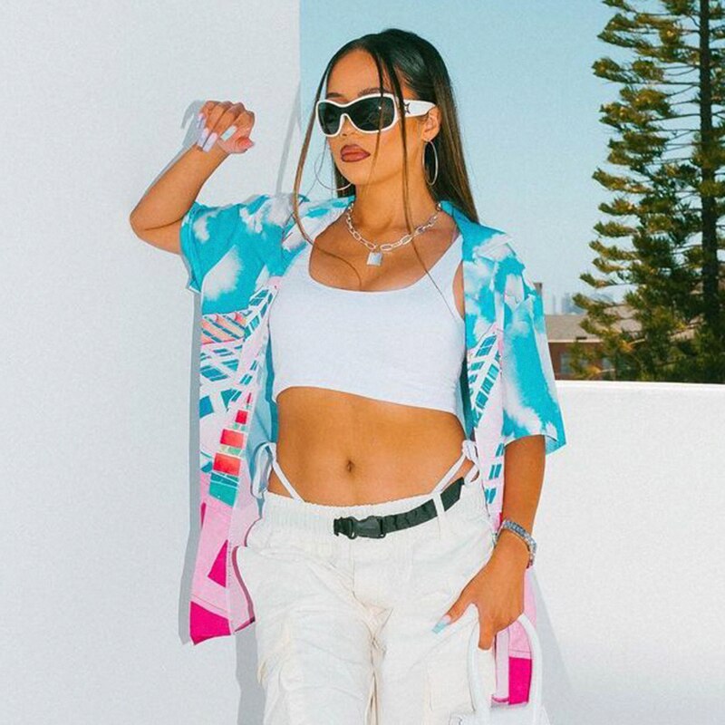 BIIKPIIK Summer Blouses Women Print Buttons Short Sleeved Turn Down Collar Tops Shirt Oversized Streetwear Sporty Casual Tshirts