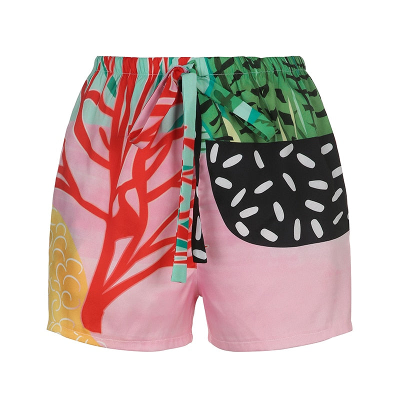 BIIKPIIK Summer Mid Waist Shorts Women Fashion Casual Beach Shorts Colourful Print Drawstring Bottom 2022 Summer Holiday Outfits