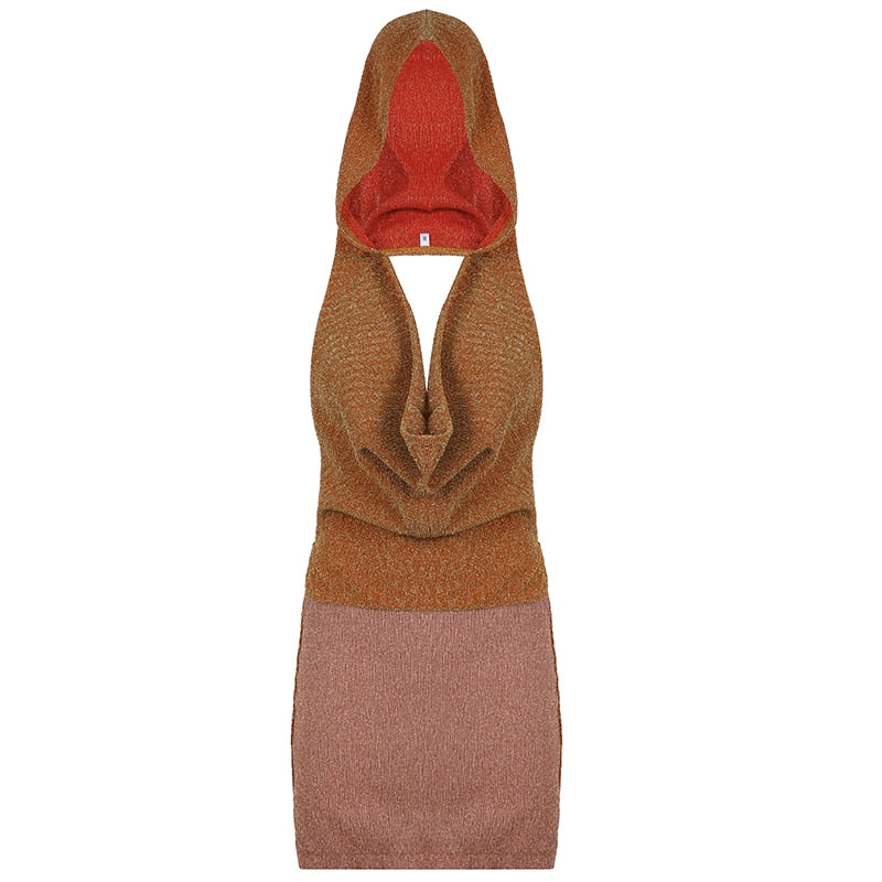 BIIKPIIK Swinging Collar V-neck Hooded Mini Dress Women Sleeveless Backless Patchwork Attirewear Clothing Sexy Vintage Dresses