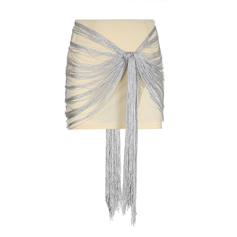 BIIKPIIK Women Mini Skirts Summer Party Elegant Tassel Decoration Slim Bodycon Splited High Waist Skirt Female Club Sexy Outfits