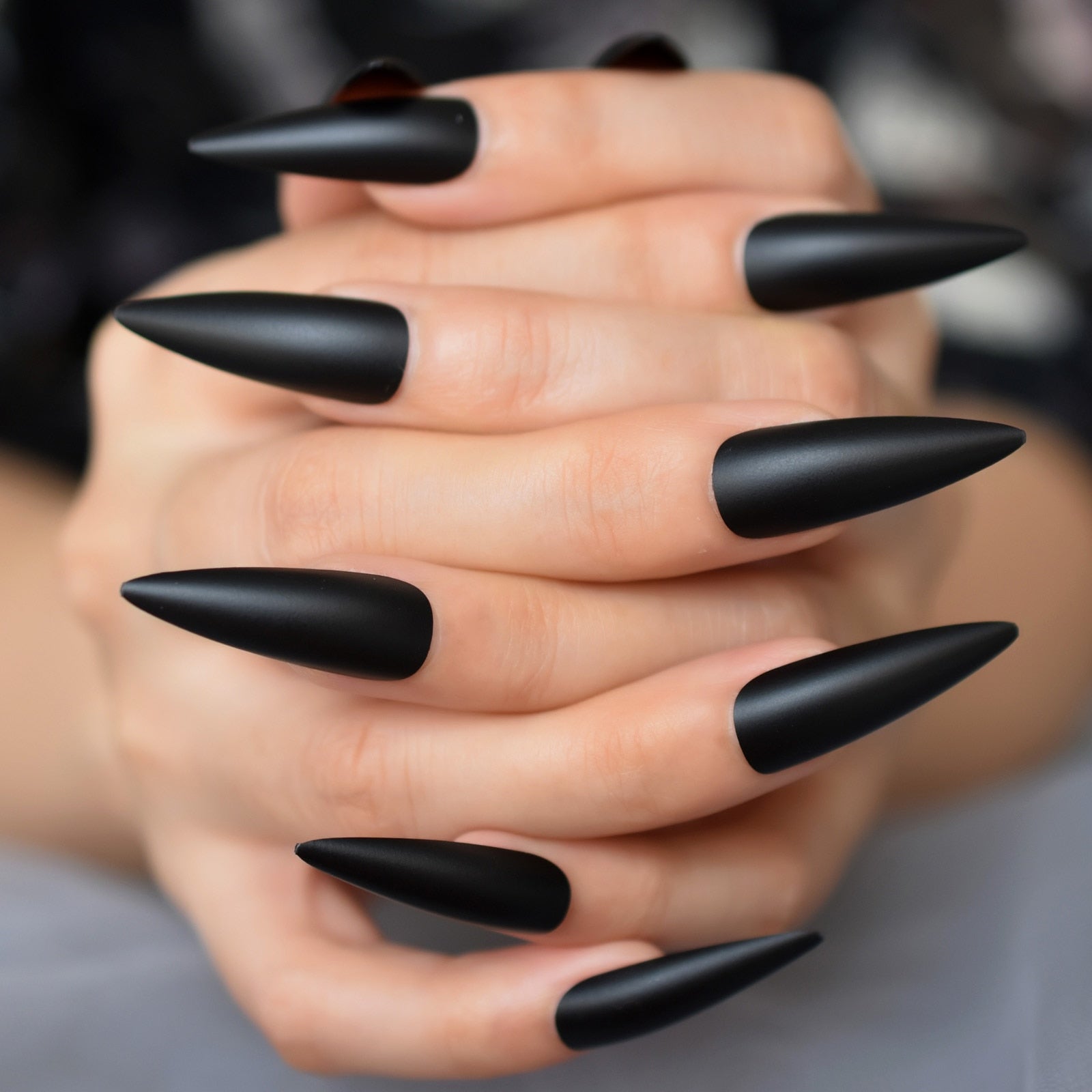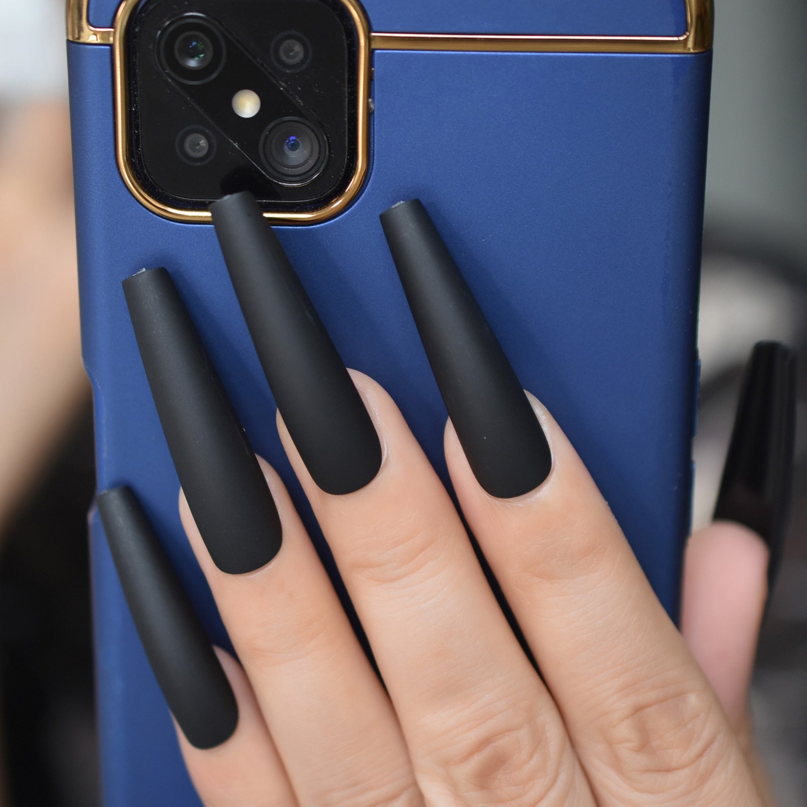 Black Fingernails Super Extra Long Coffin Slim Fake Nails For Women Matte Acrylic Nail Tips DIY Wholeslae Supplies Manicure-Nail Inspo