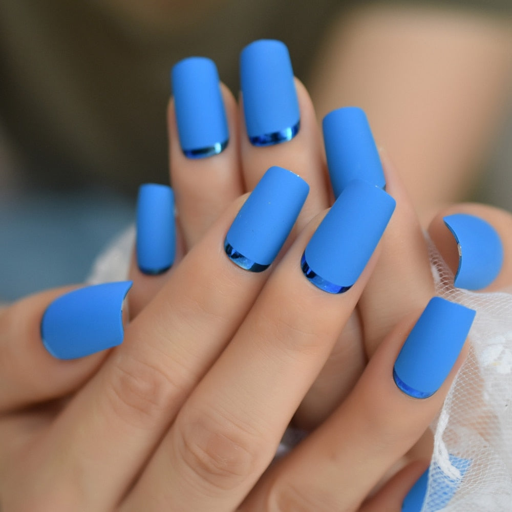 Blue Matte Square Opposite French Fake Tips Chrome Moo Fashion Medium Long Acrylic Nails Wholesale-Nail Inspo