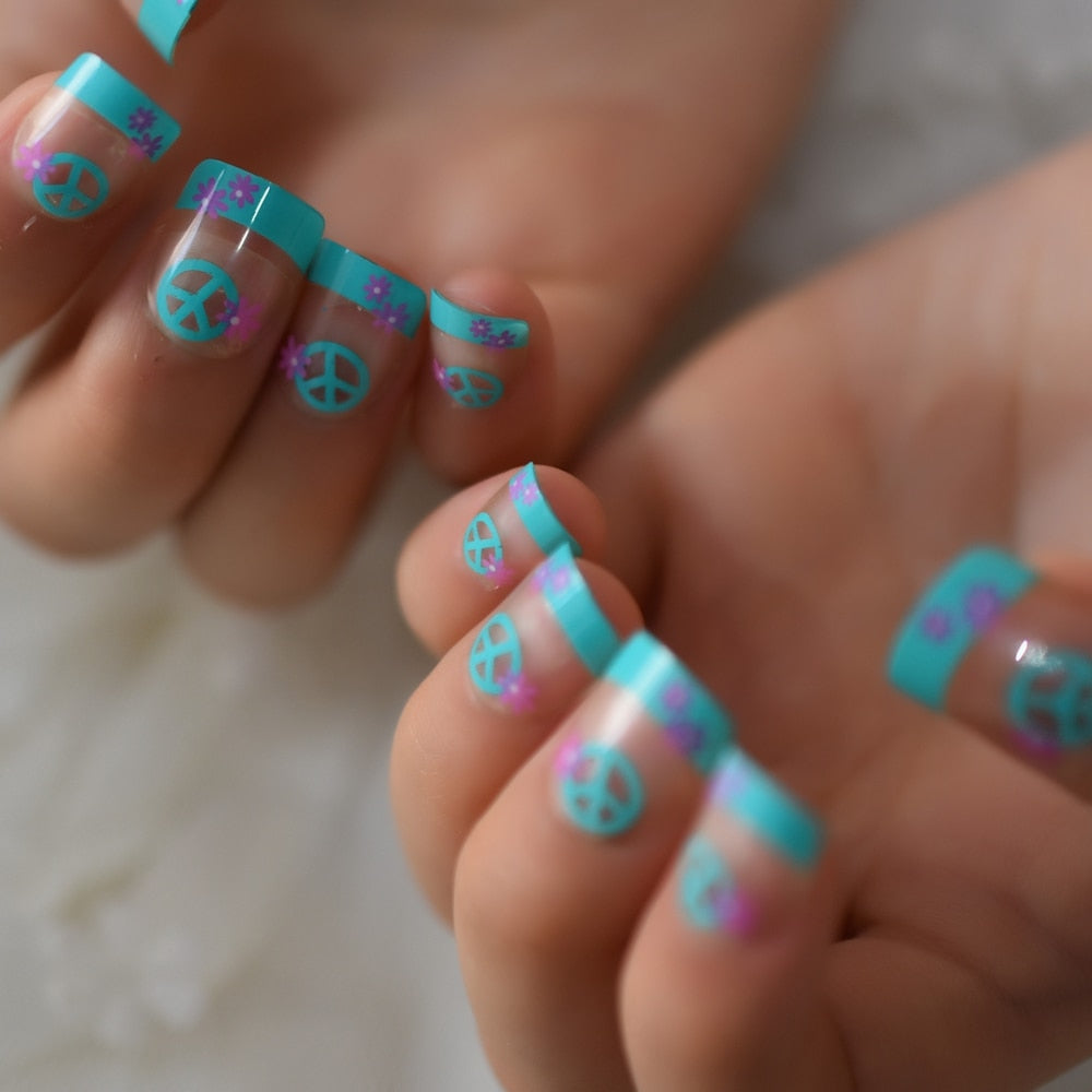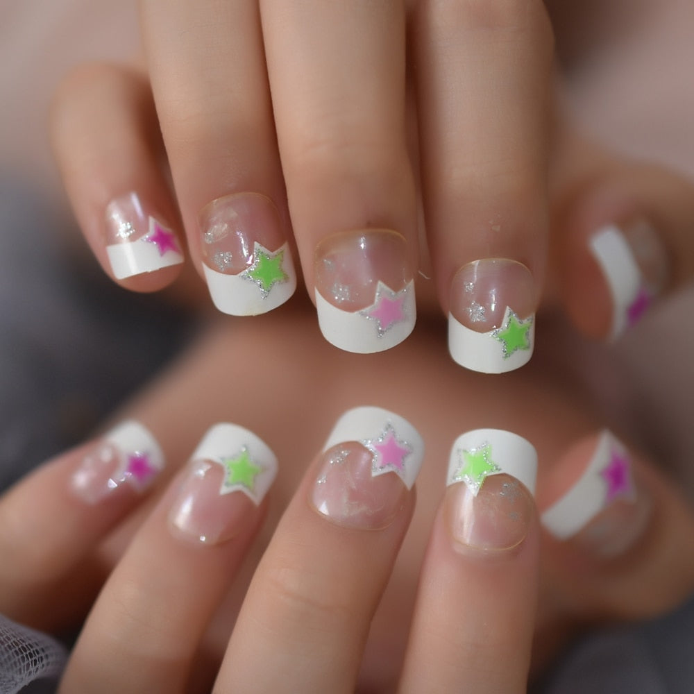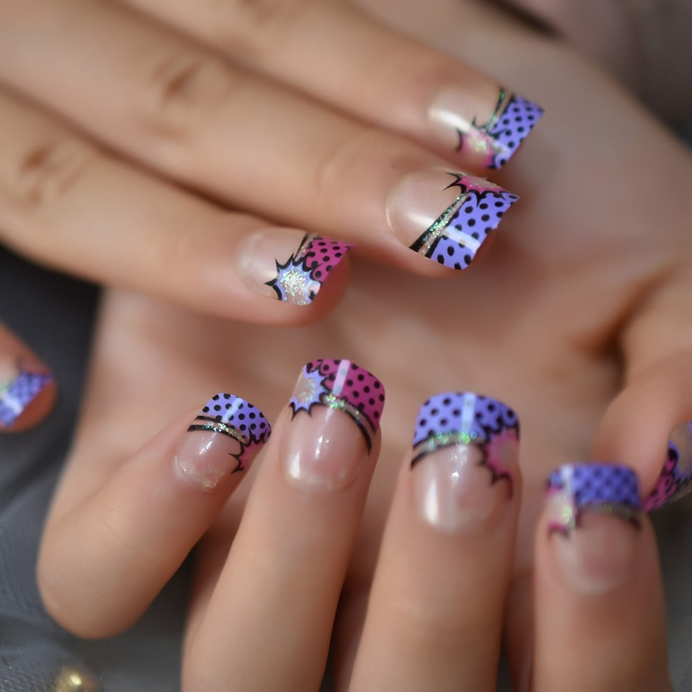 Boom Star French Nails Children Finger Decoration Pre-designed False Nails Purple Transparent Small Size Manicure Tips-Nail Inspo