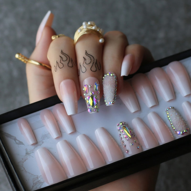 Easy to Use:Nude ballerina fake nails with glue strcker can get your favorite manicure in just 5 minutes without waiting at the nail salon.