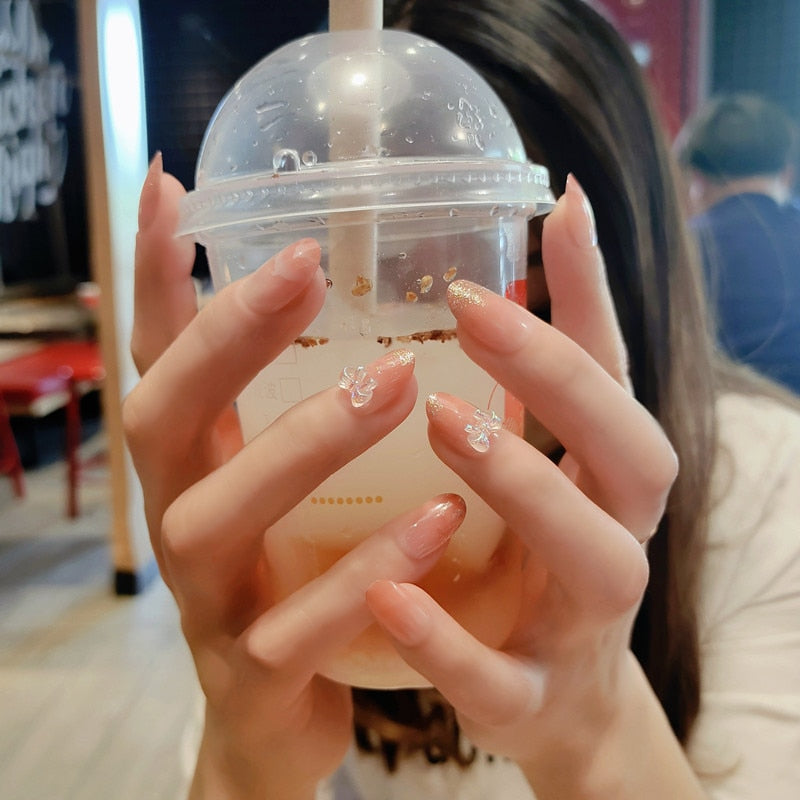 - Choose a suitable size of adhesive stickers or nail glue for your nails and stick it on your nails.