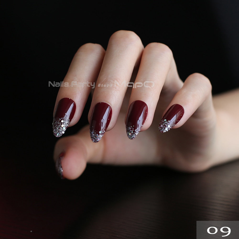 Burgundy Ombre French glitter Stiletto UV Gel nude Fake Nails Black Shimmer Finger blue false nail point tip pink Handmade-Nail Inspo