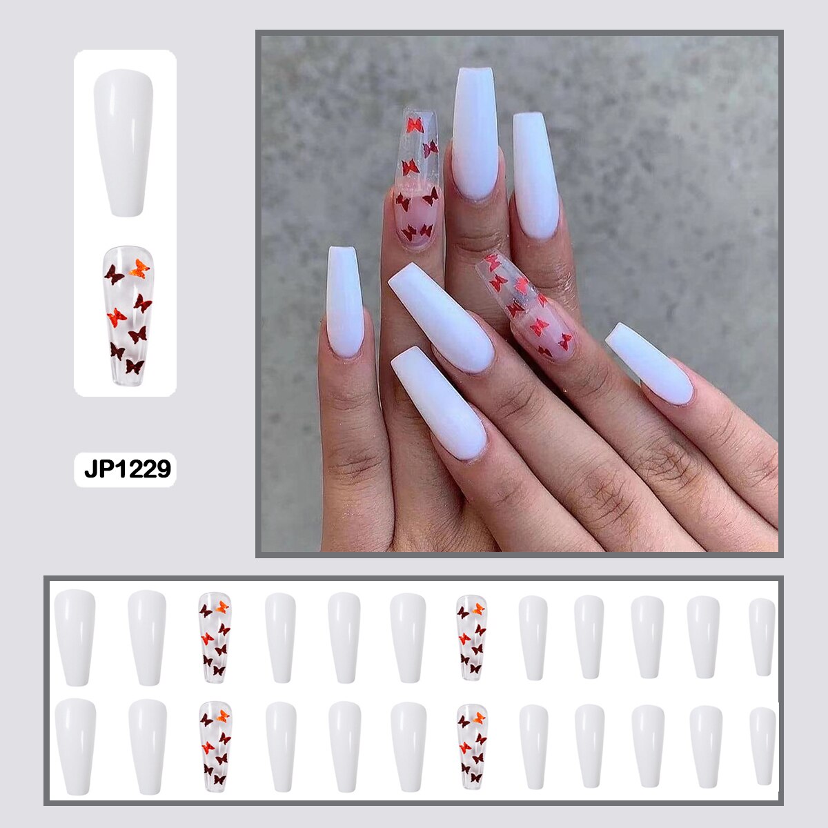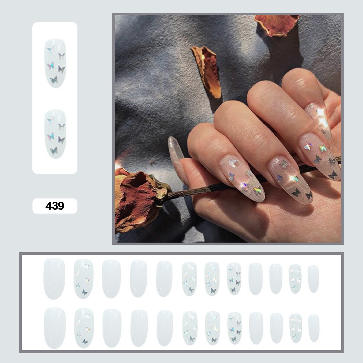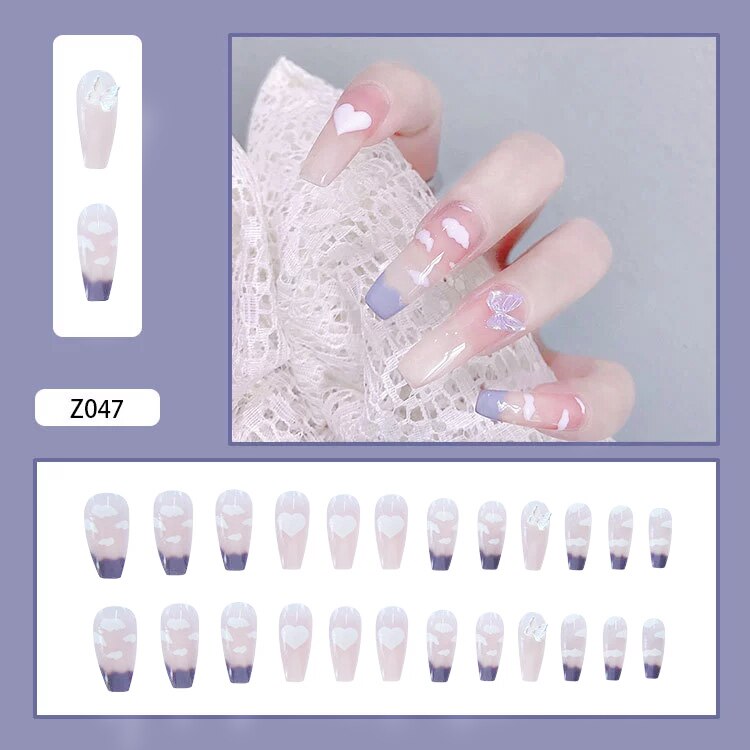 Butterfly Pattern Three-dimensional Butterfly Fairy Nail Art Wearable False Nails With Glue 24pcs/box With DIY Tools-Nail Inspo
