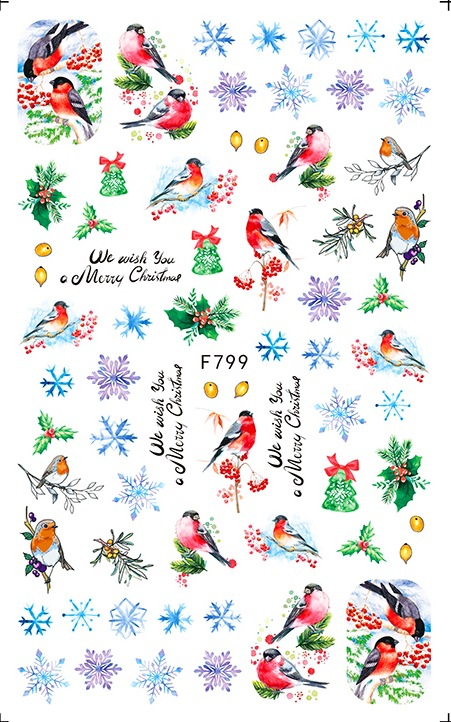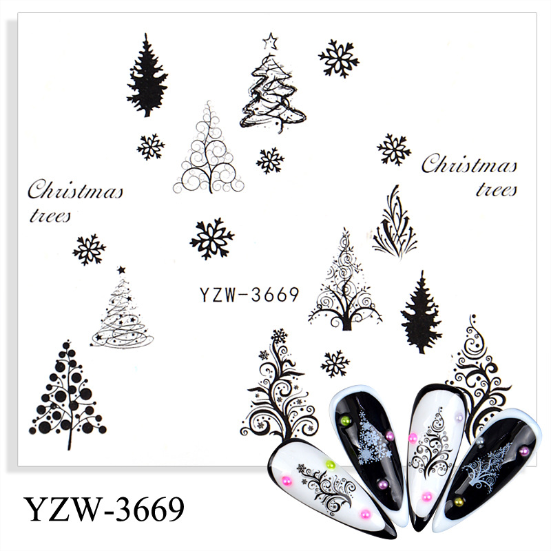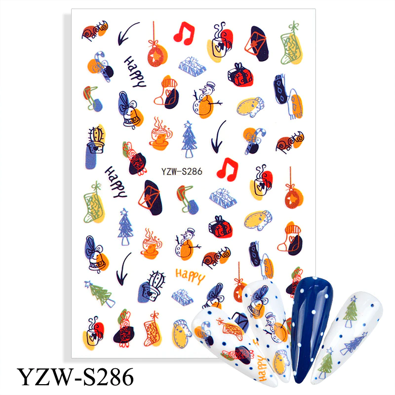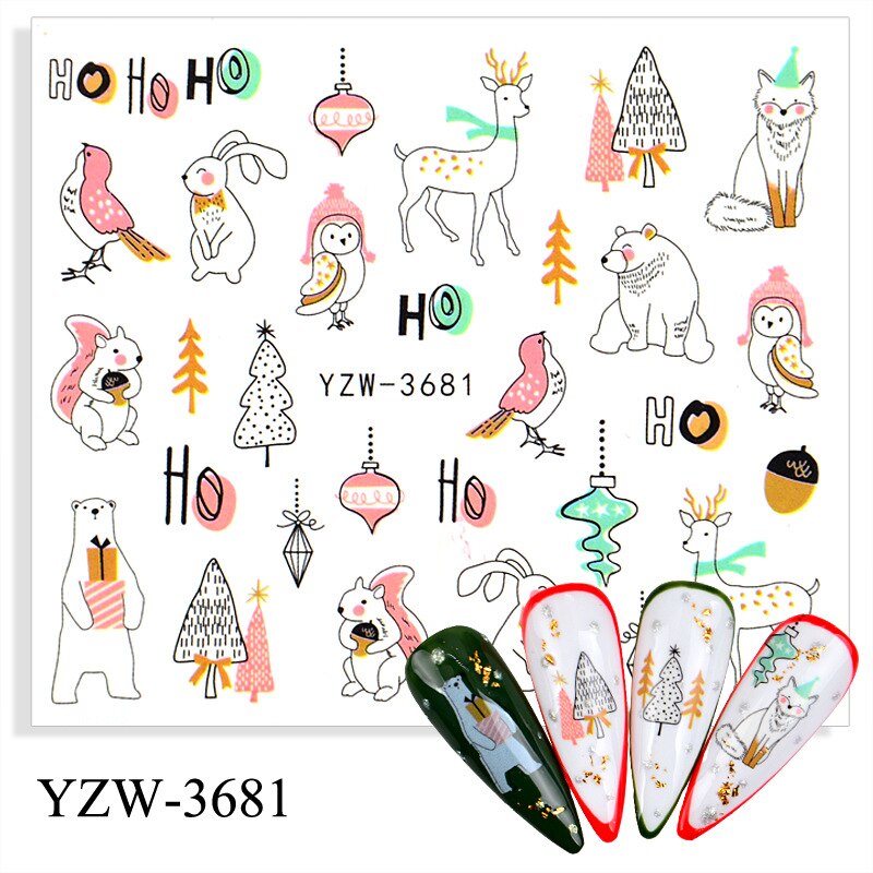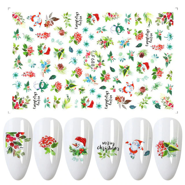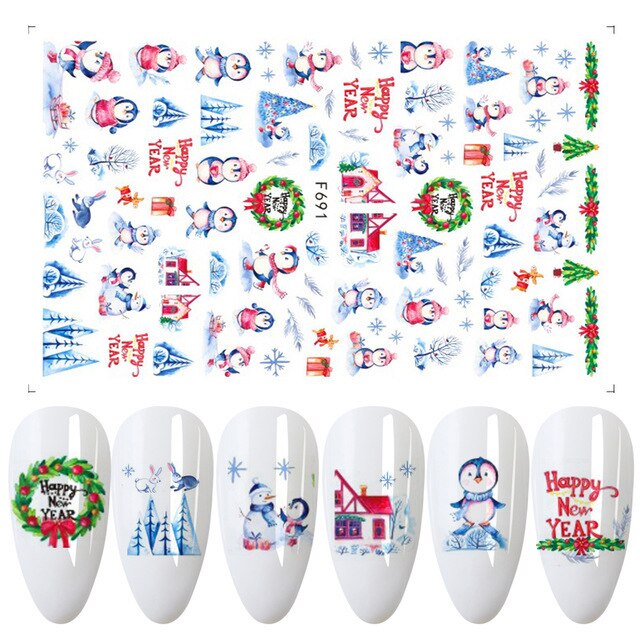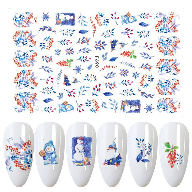 Churchf 1pcs Autumn Winter Nail Sticker Robin Snow Flower New Year Halloween Christmas 3D Decals Nail Art Design Decor Accessories-Nail Inspo