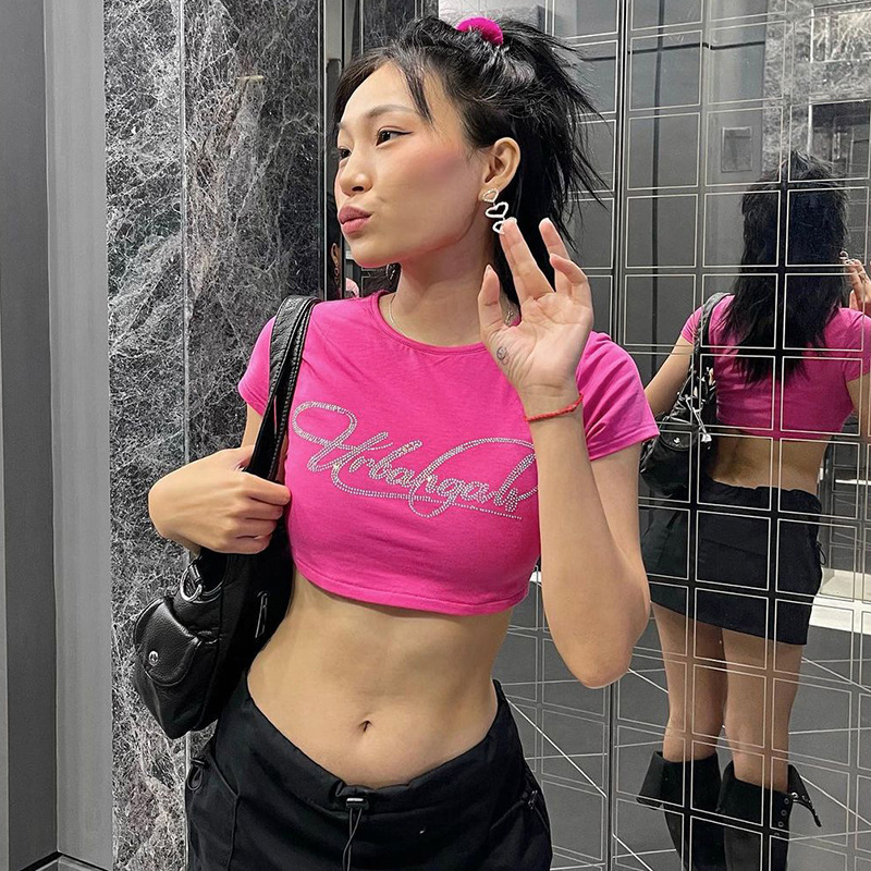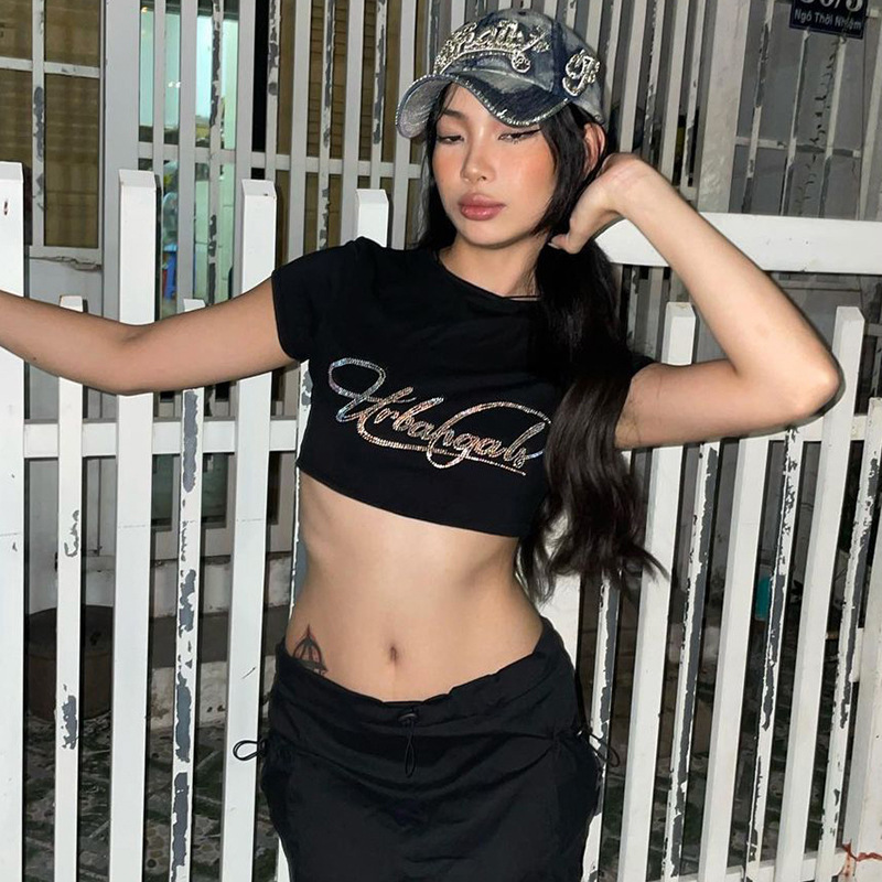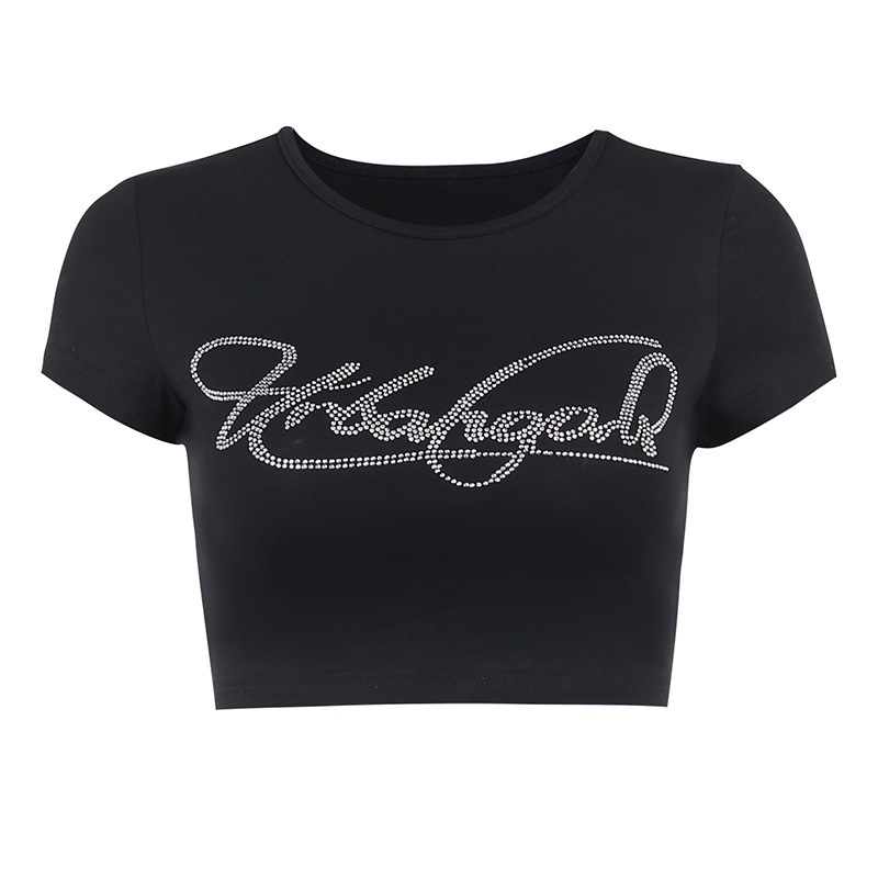 Churchf 2024 Round Collar Hot Diamond Letter Babes Short Top In Niche Summer Fashion Casual T-Shirt Girl