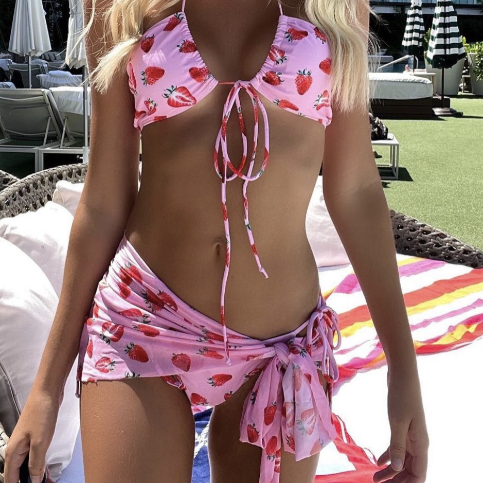 Churchf 202Ins Three-Piece Mesh Fresh Girl Drawstring Strap Swimsuit Bikini