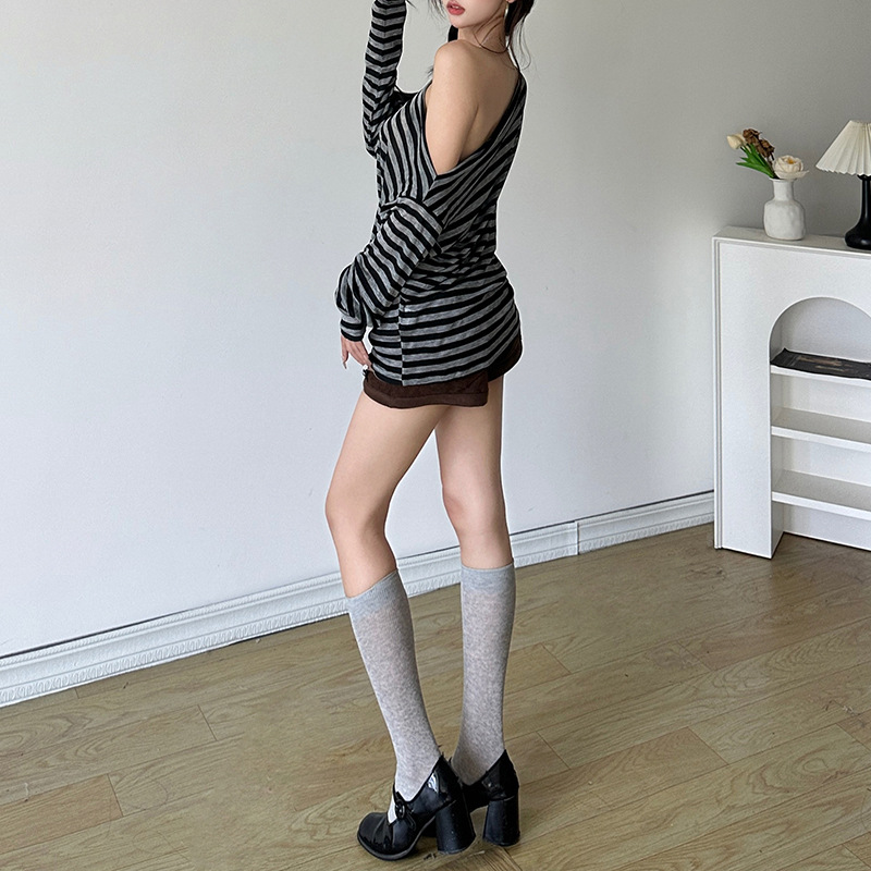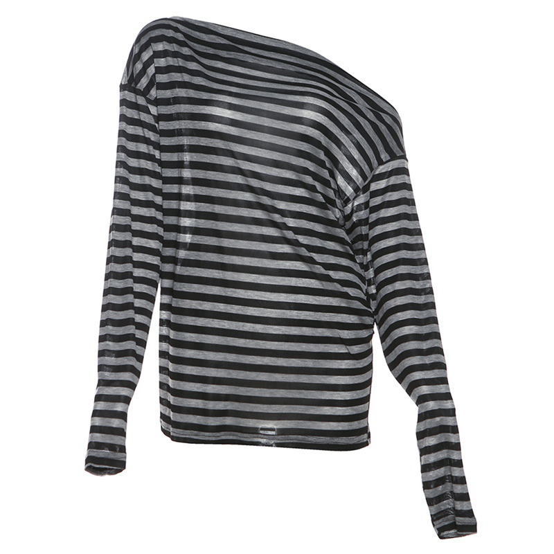 Churchf Autumn 2024 New Women's Commuting Unique Cut-Up With Slanted Shoulder Striped Long-Sleeved Top