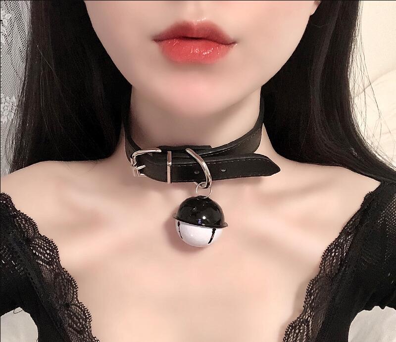 Churchf Big Bell Collar Sex Lingerie Accessories PU Leather Necklace Neck Ring Sexy Maid Wind Traction Chain Collar