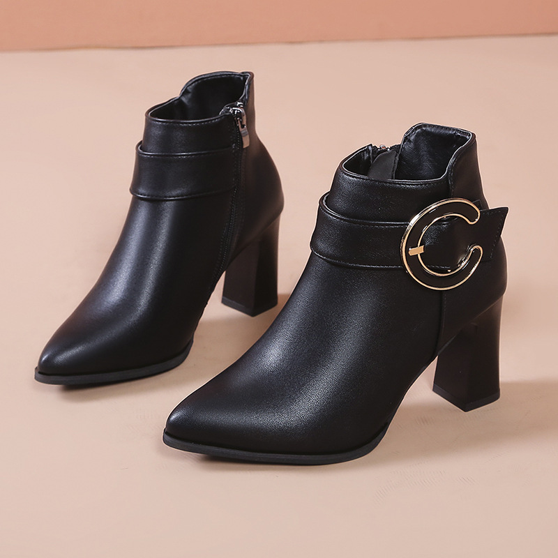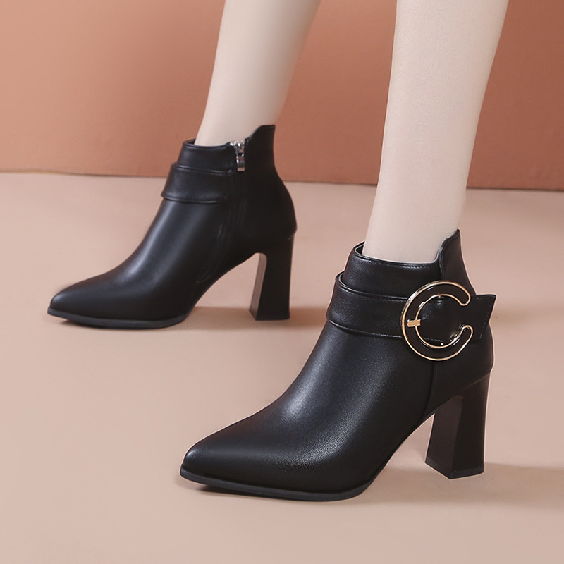 Churchf Boots Women's 2025 Autumn And Winter Casual Fashion Ankle Boots Side Zipper Tide With Thick Heel High Heel Casual Women's Shoes