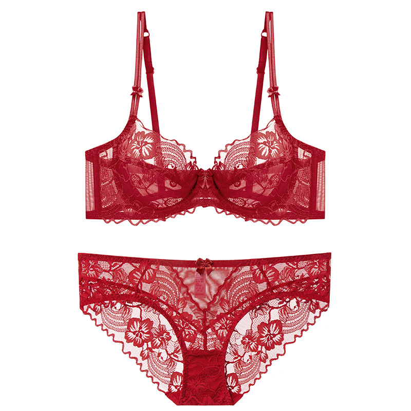 Churchf Bra Sexy Pure Desire Underwear Women's Summer Breathable French Small Agglomeration Bra Lace Panties Set