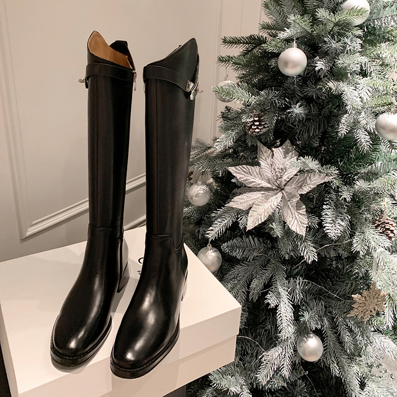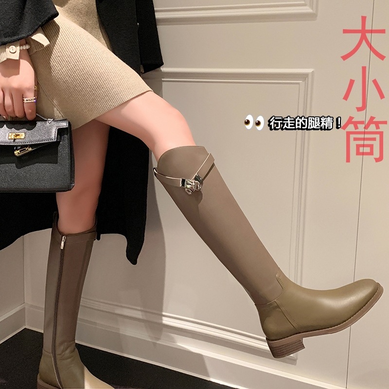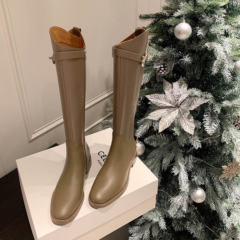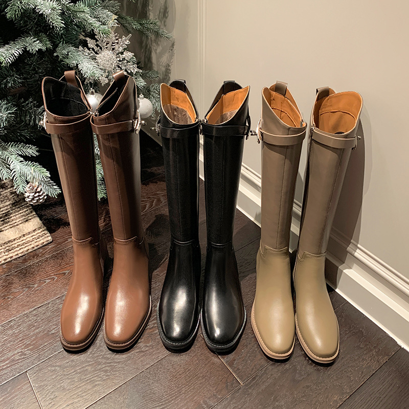 Churchf Churchf 2024 New But Knee Boots British Metal Buckle Knight Boots Thick Heel Boots High Boots Flat Boots