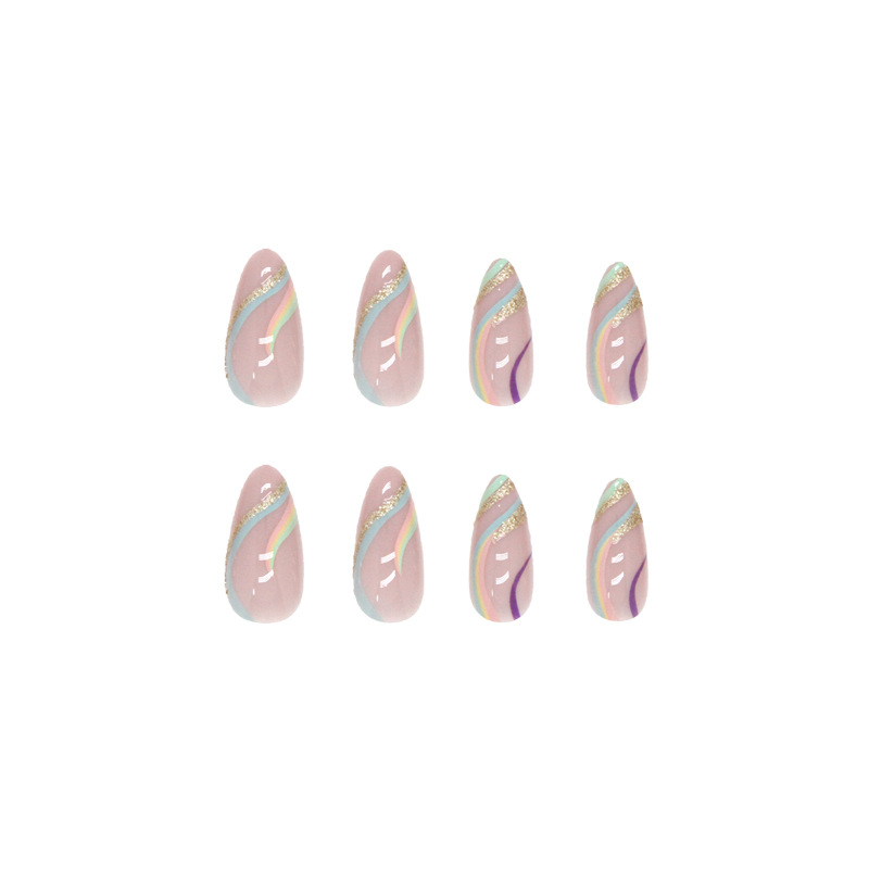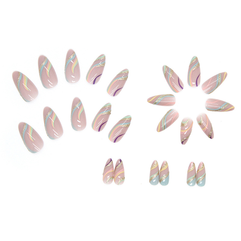 Churchf Churchf A Finished Multi-Color Corrugated Shiny Gold Powder Nail Ins Wind Fake Nails 24 Pieces Box
