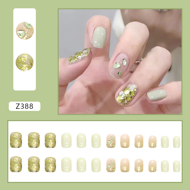 Churchf Churchf A Summer Fresh Milk Green Flash Honeydew Melon Series Of Piece Green Diamond Nail Products Fake Nails