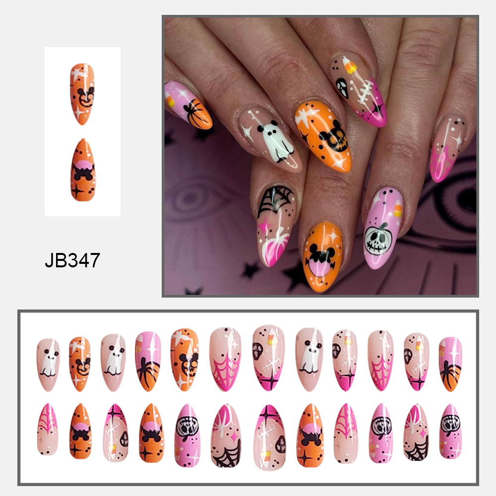 Churchf Churchf Almond Nail Colorful Skull Pumpkin Ghost Halloween Element Fake Nails Finished Wear Armour Festival Beauty