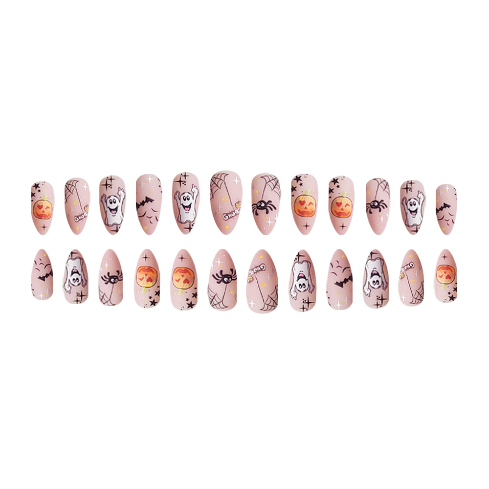 Churchf Churchf Almond Nail Happy Pumpkin Ghost Spider Halloween Element Fake Nail Finished Wear A Holiday Beauty