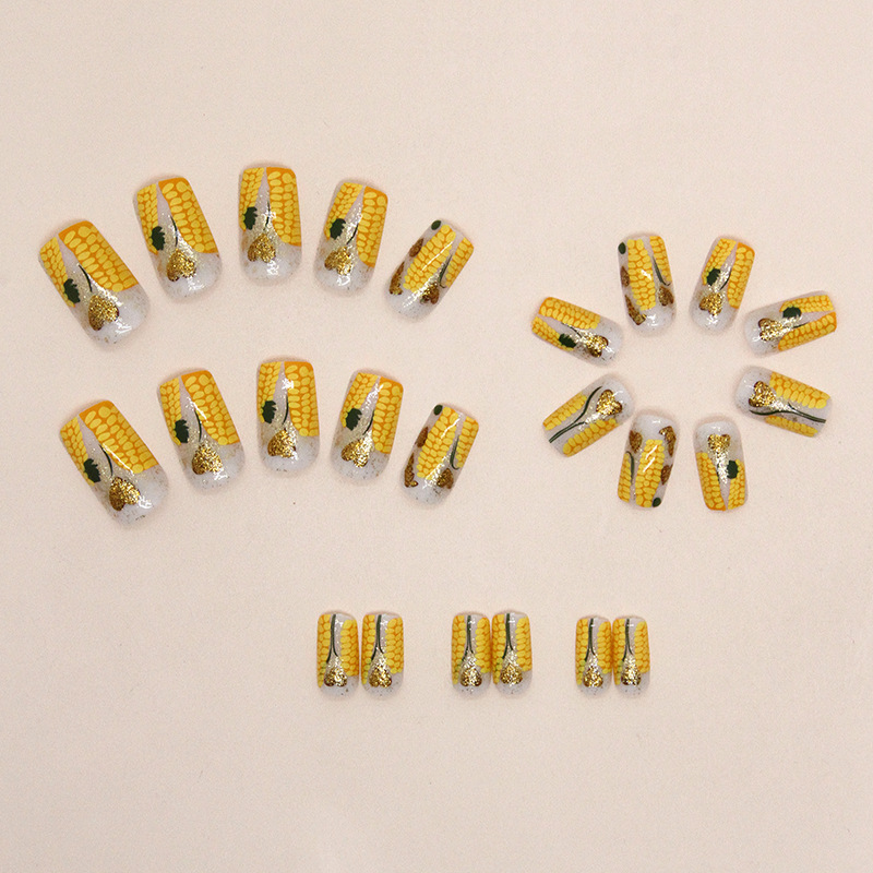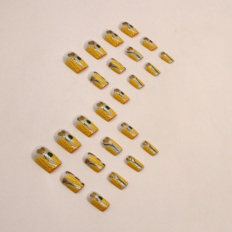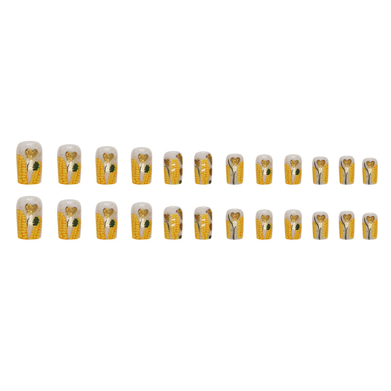 Churchf Churchf And Long European Square Yellow Love Flash Powder Corn Nail Ins Sweet Beauty Nail Piece 24 Pieces