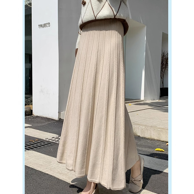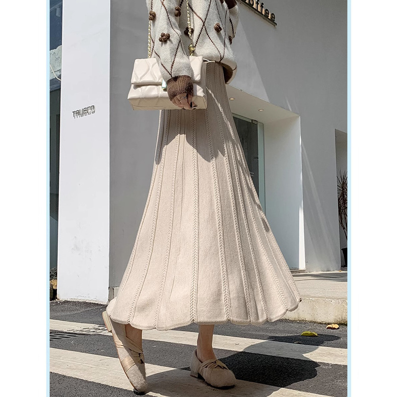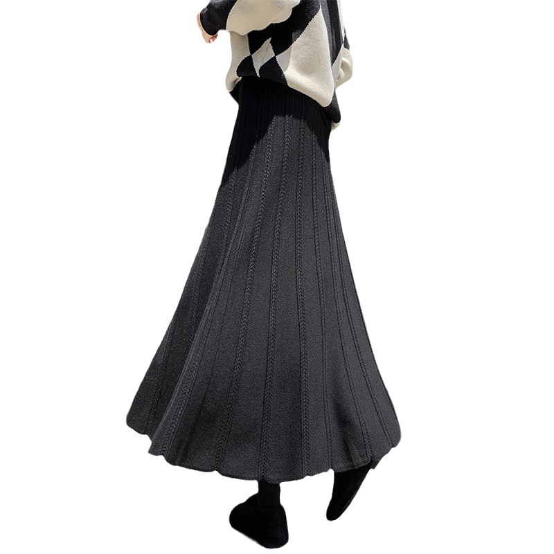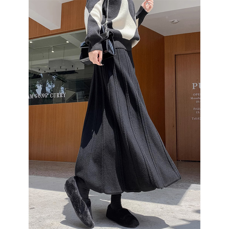 Churchf Churchf And Winter New Casual Wool Big Place Skirt Thread Thickened Tall Waist A-Word Skirt Black Skirt Female Knit Skirt