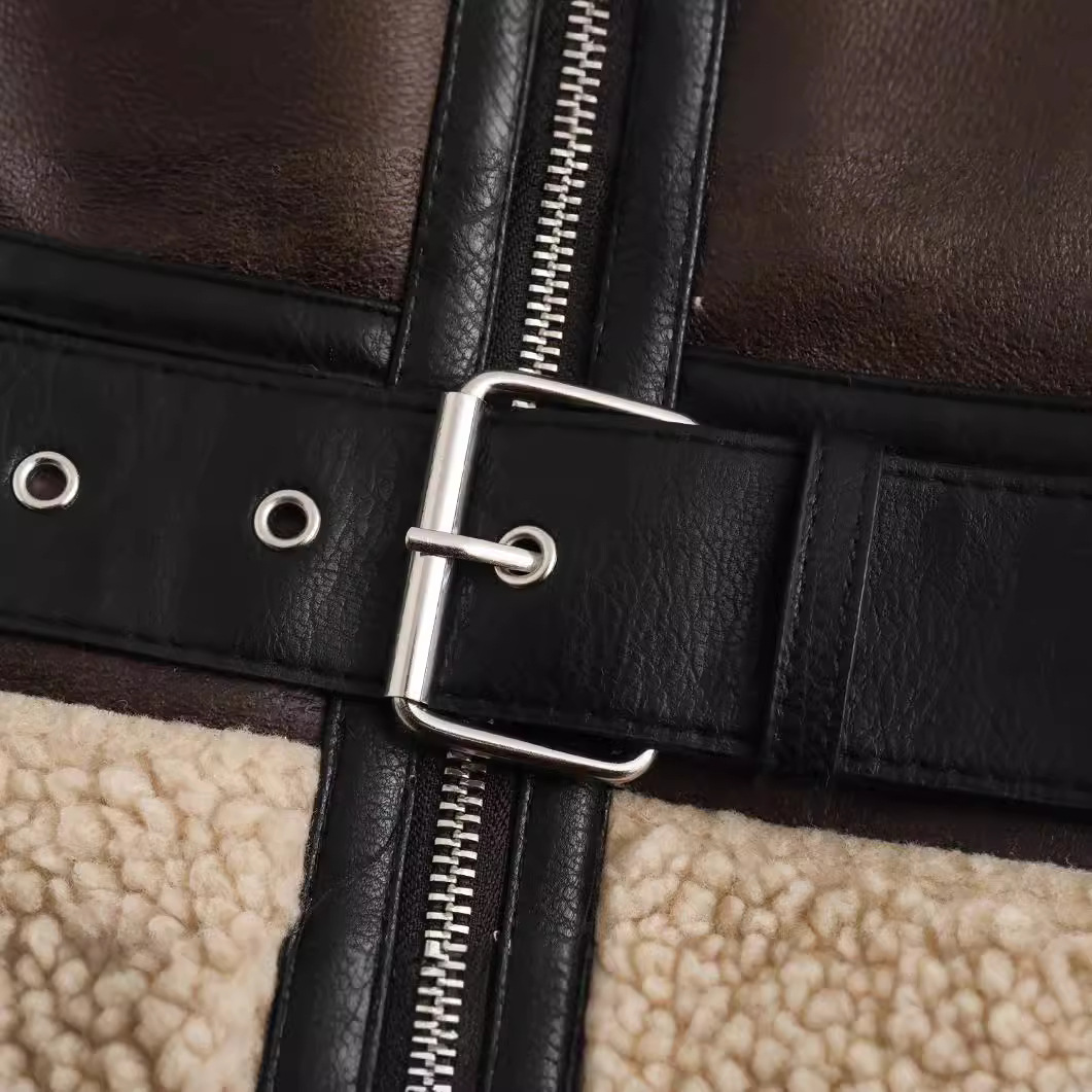 Churchf Churchf Autumn And Winter New Women's Fur One Retro Motorcycle Style Short Jacket Coat 8073236
