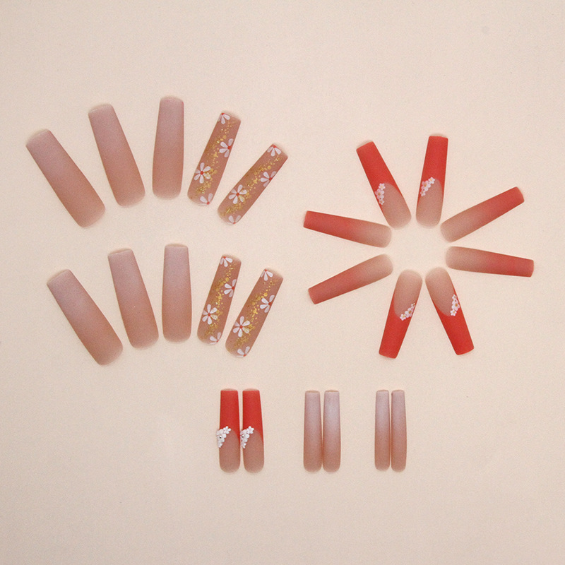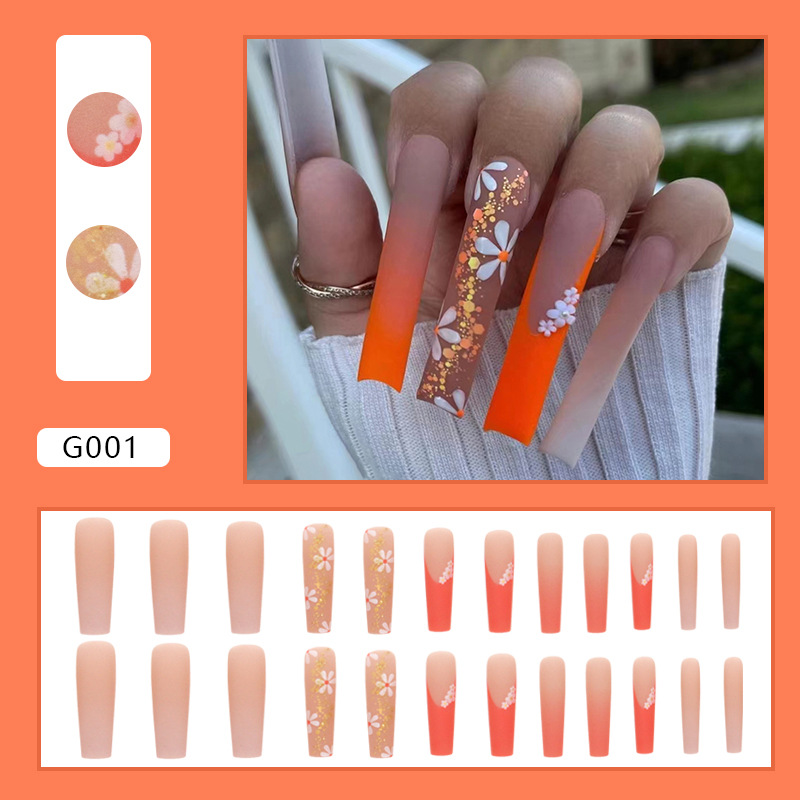 Churchf Churchf Autumn Orange French Long Water Pipe Nail Hot Girl Ins Wind Diamond Flower Wear Nail
