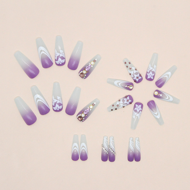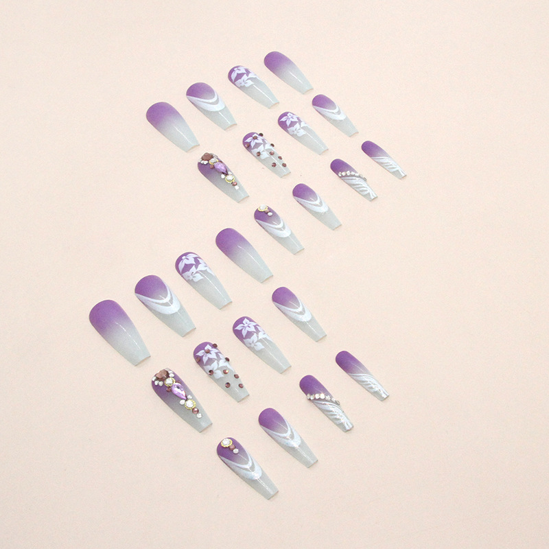 Churchf Churchf Ballet Purple Gradient Flower Flower Nail Drill Model Sun Flower Fake Nail Finished Wear A Nails