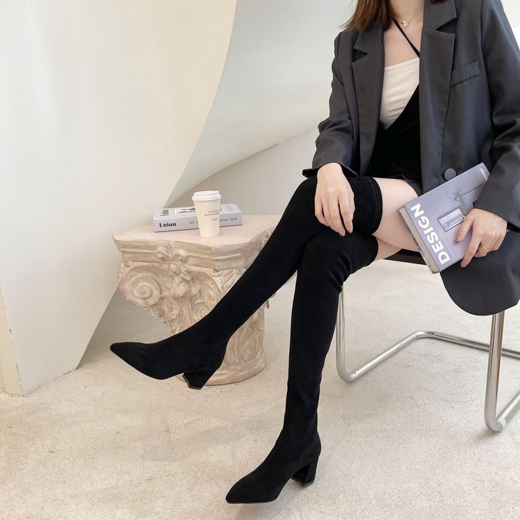 Churchf Churchf Boots Female Autumn Dong Thick Heel High Heel 2023 New Thick Leg Khaki Boots Suede Pointed Elastic Boots