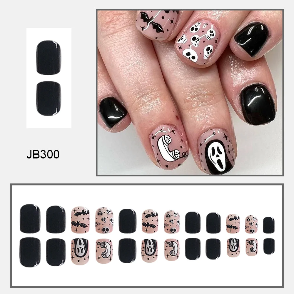 Churchf Churchf Bright Oil Short Party Armor Halloween Skeleton Bat Fake Nail Finished Wear Armor Holiday Nail