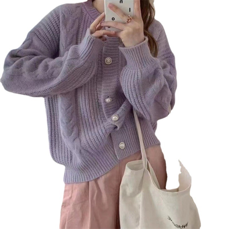 Churchf Churchf Button Twist Sweater Female Coat 2024 New Loose Soft Waxy Temperament Knit Cardigan Jacket Female