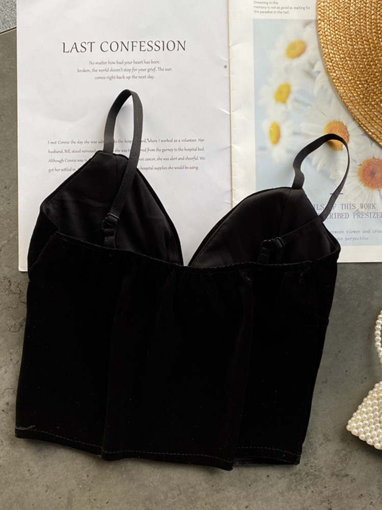 Churchf Churchf Celebrity Heart Small Condole Belt Vest Female Fashionable Inside Take Outside Wear Versatile V Collar Slim Short Retro Velvet Jacket