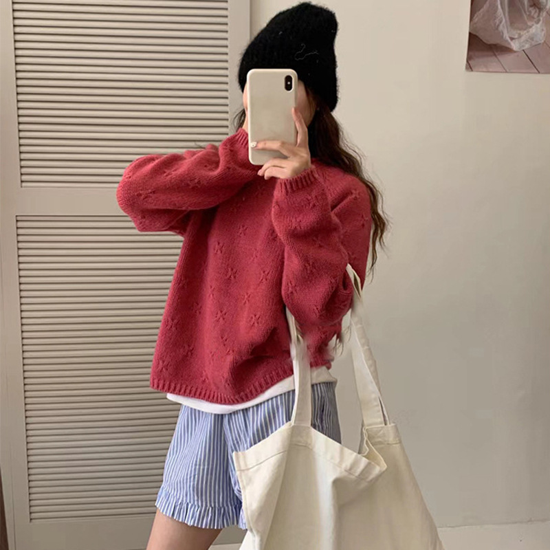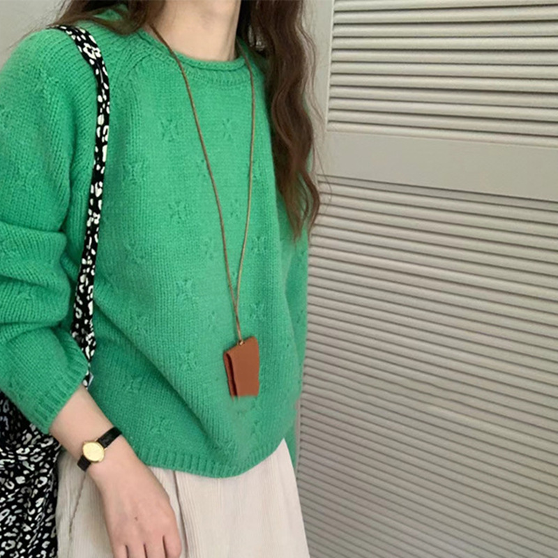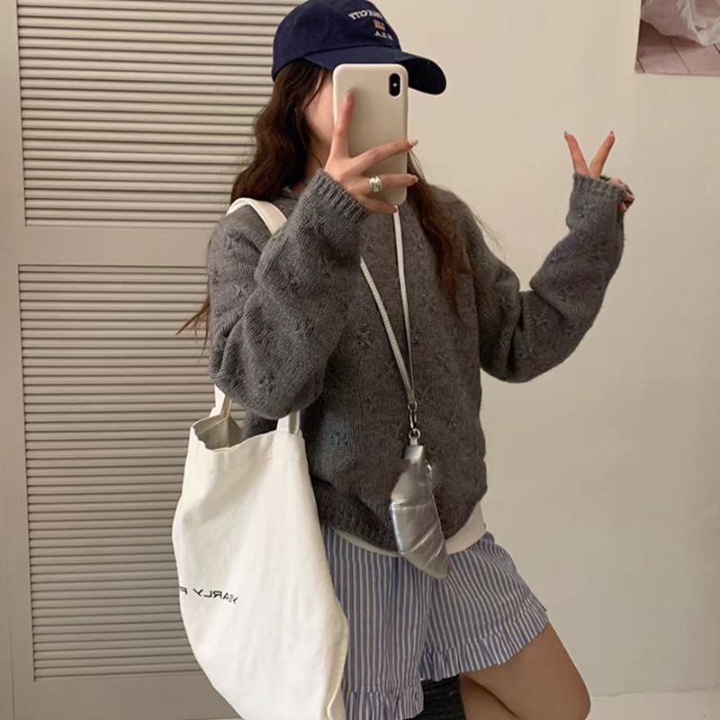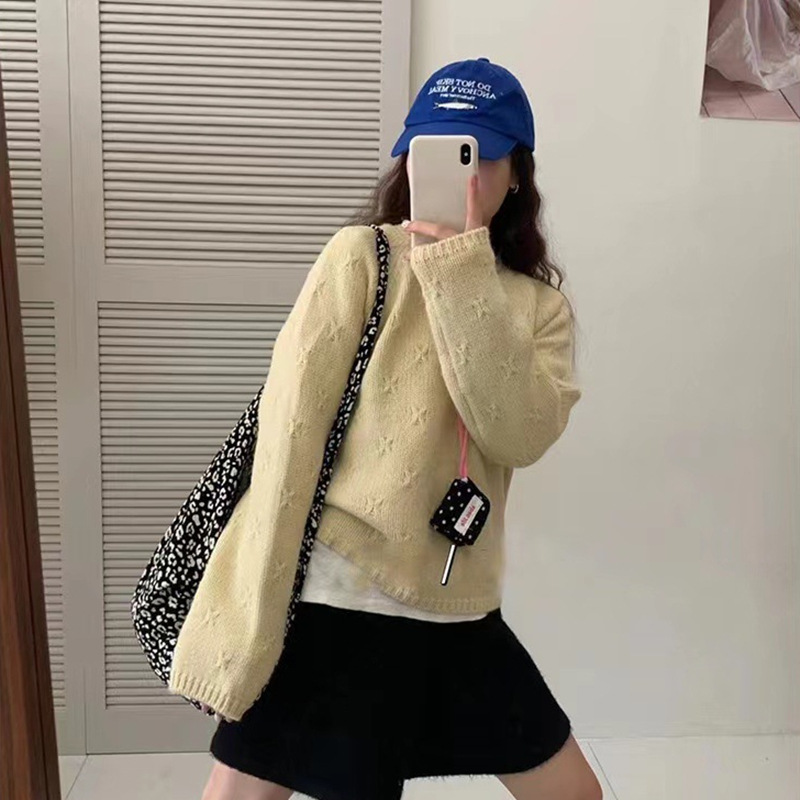 Churchf Churchf Color Restoring Ancient Ways Hook Flower Sweater Female Autumn Dong New Loose Lazy Wind Inserted Shoulder Sleeve Gentle Round Collar Sleeve Knitting