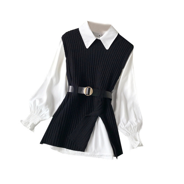 Churchf Churchf Design Sense Slit Knit Vest Shirt Foreign Style Reduced Age Two Suit Spring New White Shirt Jacket Female