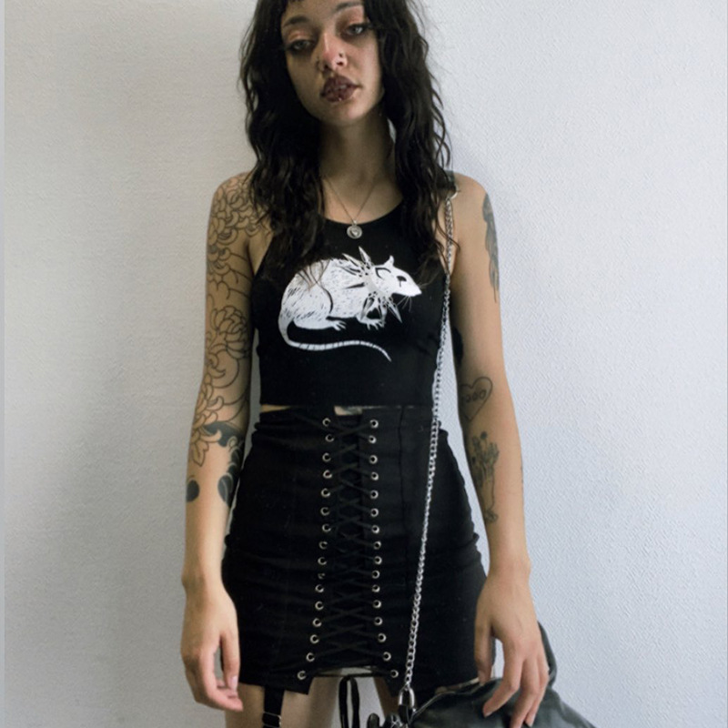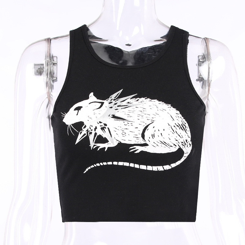 Churchf Churchf Design Summer New Mouse Print Vest 2024 Sexy Crop Small Vest Woman