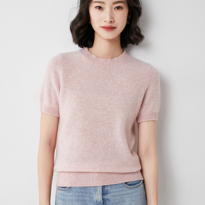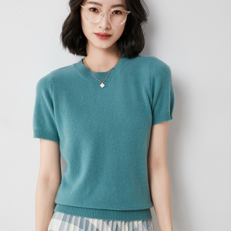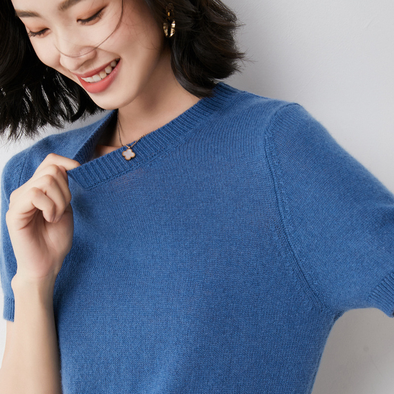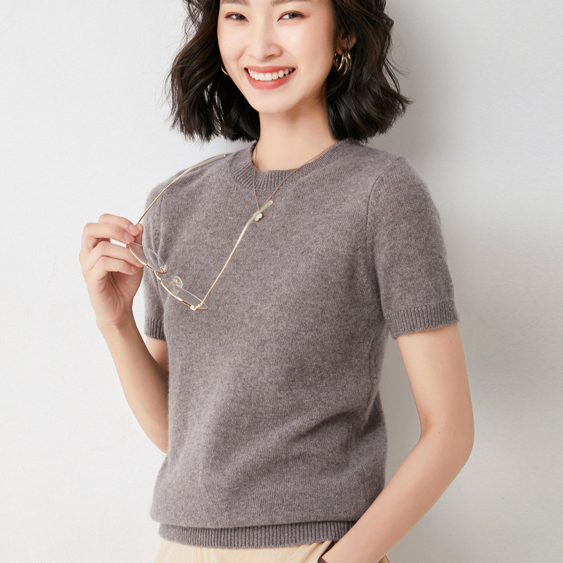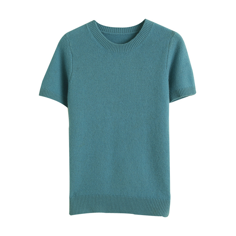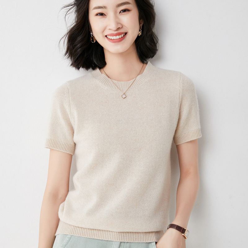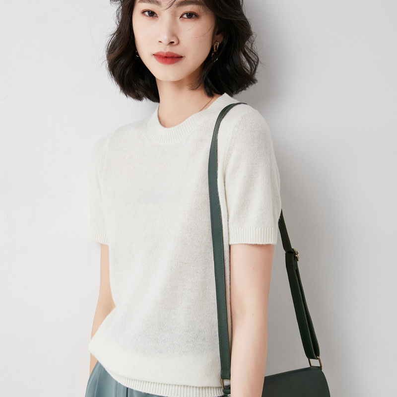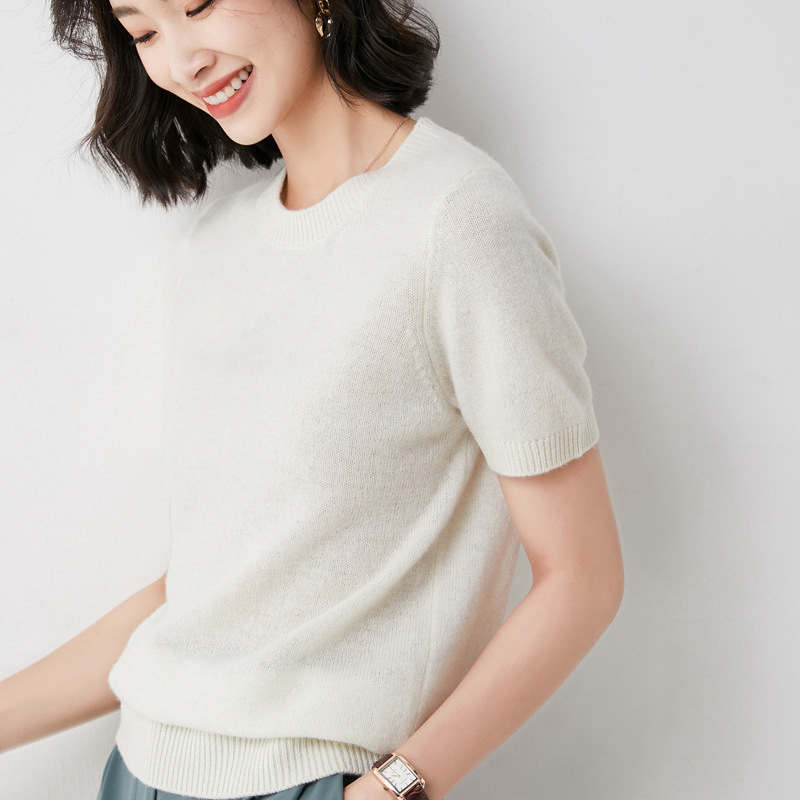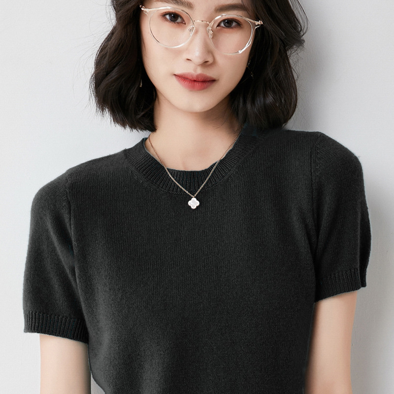 Churchf Churchf Female Round Collar Loose T-Shirt Inside Build Sweater Spring Autumn Base Outside Wear Short Sleeve Hair
