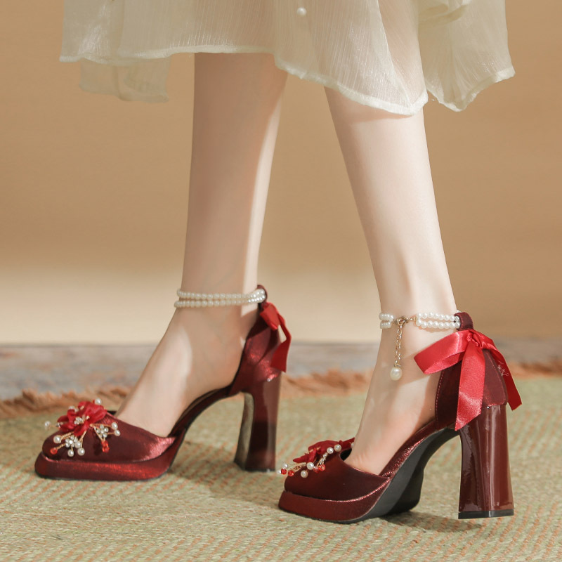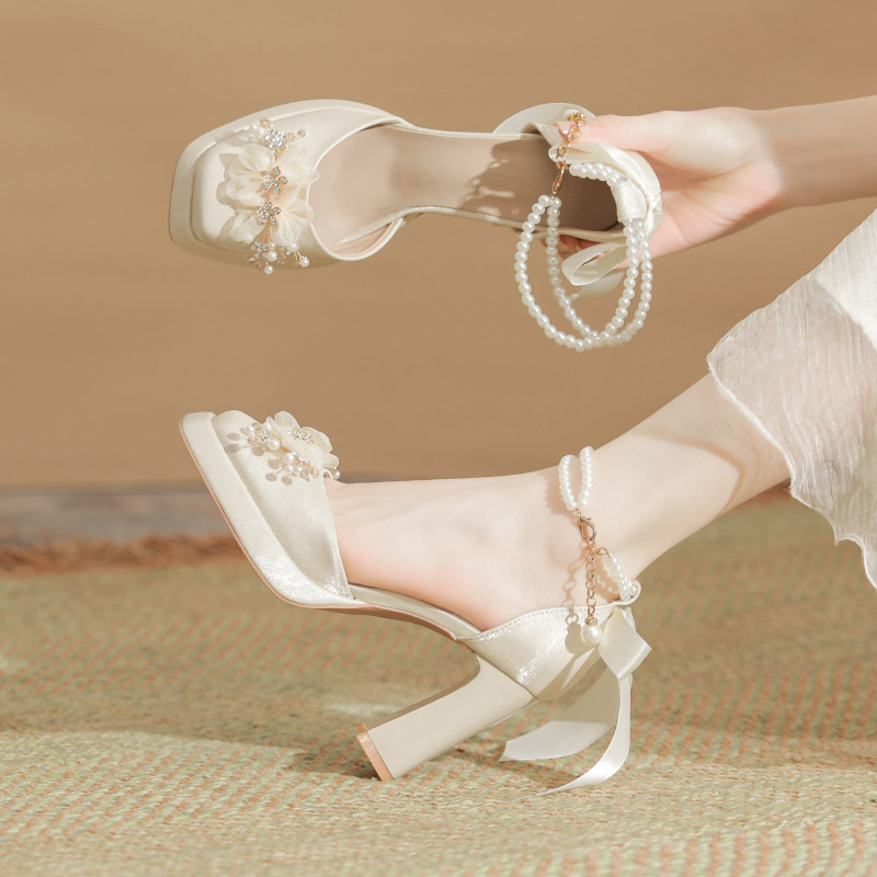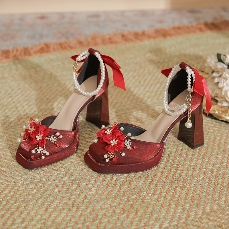 Churchf Churchf Flower Rhinestone Rough With Mary Jane Satin Hollow Xiu He Wedding Dress Two Wear Wedding Shoes Bridesmaid Shoes Female