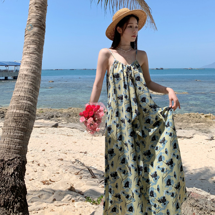 Churchf Churchf French Dress Female Spring And Summer Loose Design Sense Small Green Condole Skirt Seaside Vacation Long