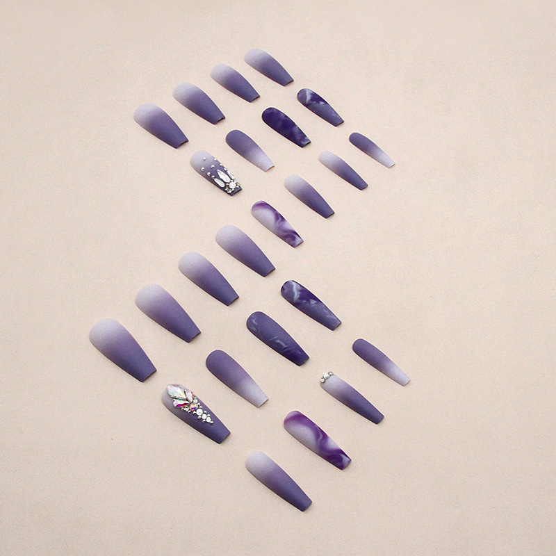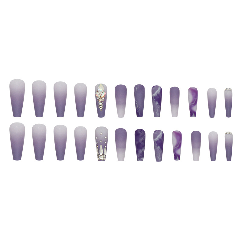 Churchf Churchf Gentle Purple Flash Diamond Nail Long Ballet Temperament Wear A Finished Fake Nails