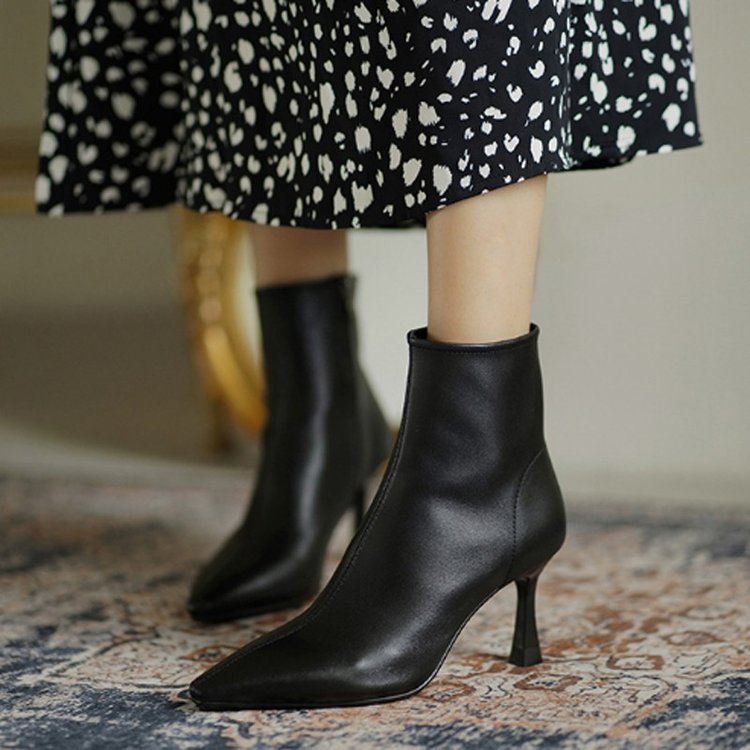 Churchf Churchf Heel Ankle Boots Women Korean Version Of Autumn And Winter New Ankle Boots Small Heel White Pointed French Thin Heel Side Zipper Martin Boots Women