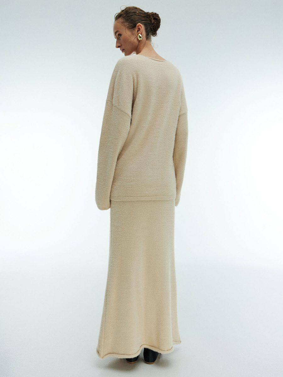 Churchf Churchf Mink Wool Sweater Suit Female Autumn And Winter Commute Simple Knit V-Neck Sweater Half Body