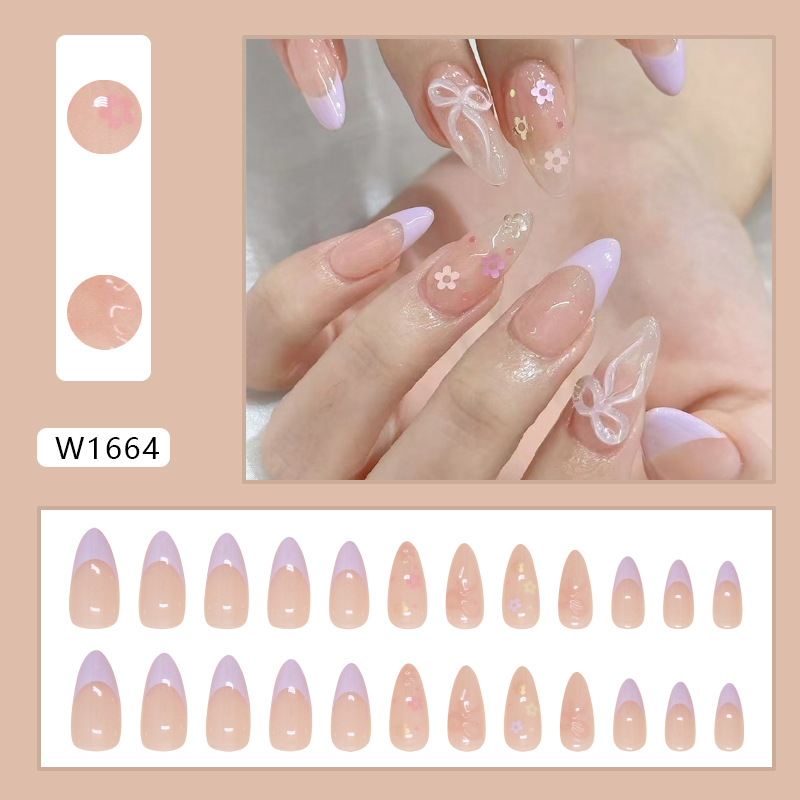 Churchf Churchf Nails French Wear Nail Stereo Bow Removable Beauty Nail Piece Flower Nail Piece Nail Patch