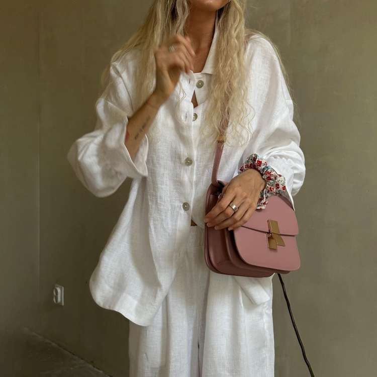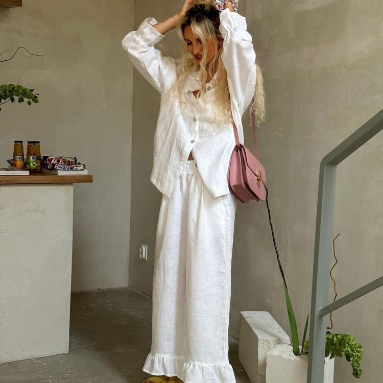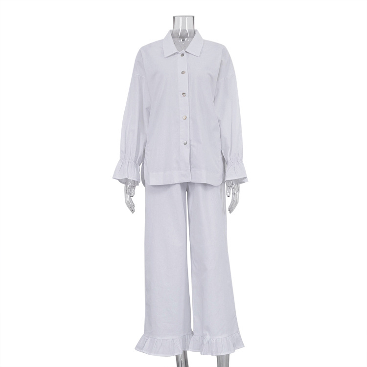 Churchf Churchf New French Design Sense Horn Sleeve Shirt Trousers Two Sets Of Cotton Casual Suit Female Spring Outfit