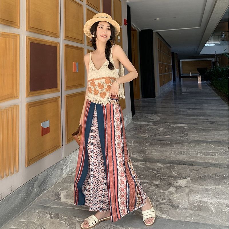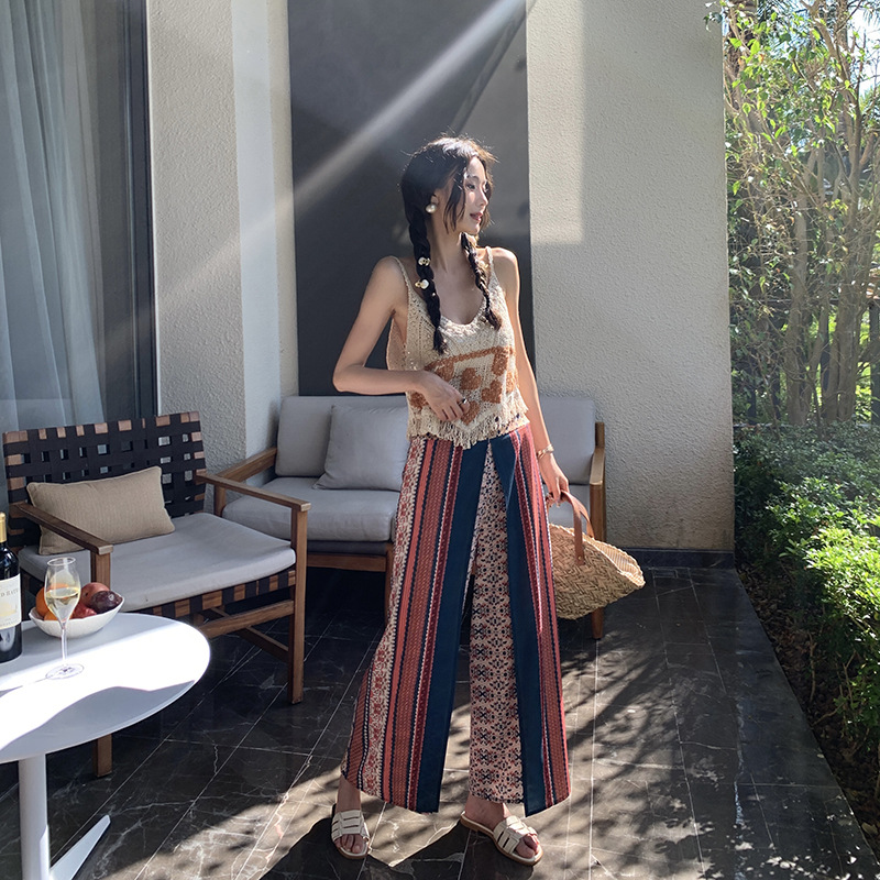 Churchf Churchf New Print Wide-Leg Pants Ethnic Snow Spinning Pants Bohemian Beach Pants Women