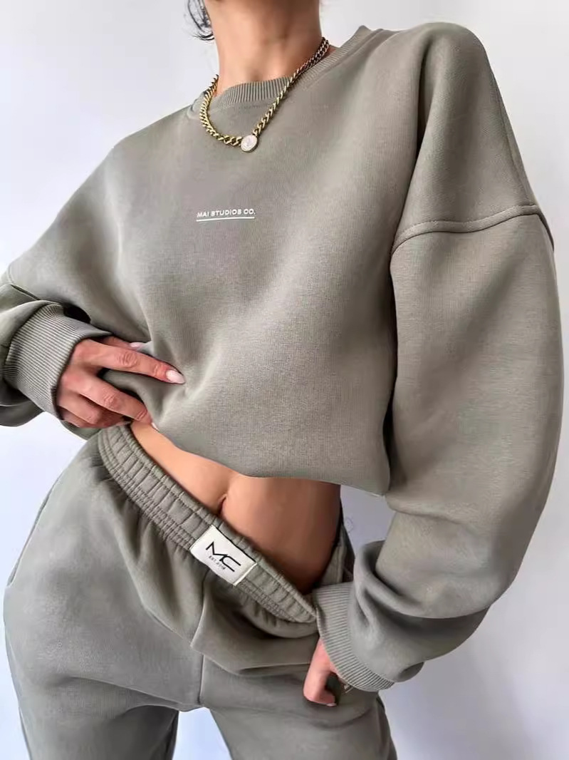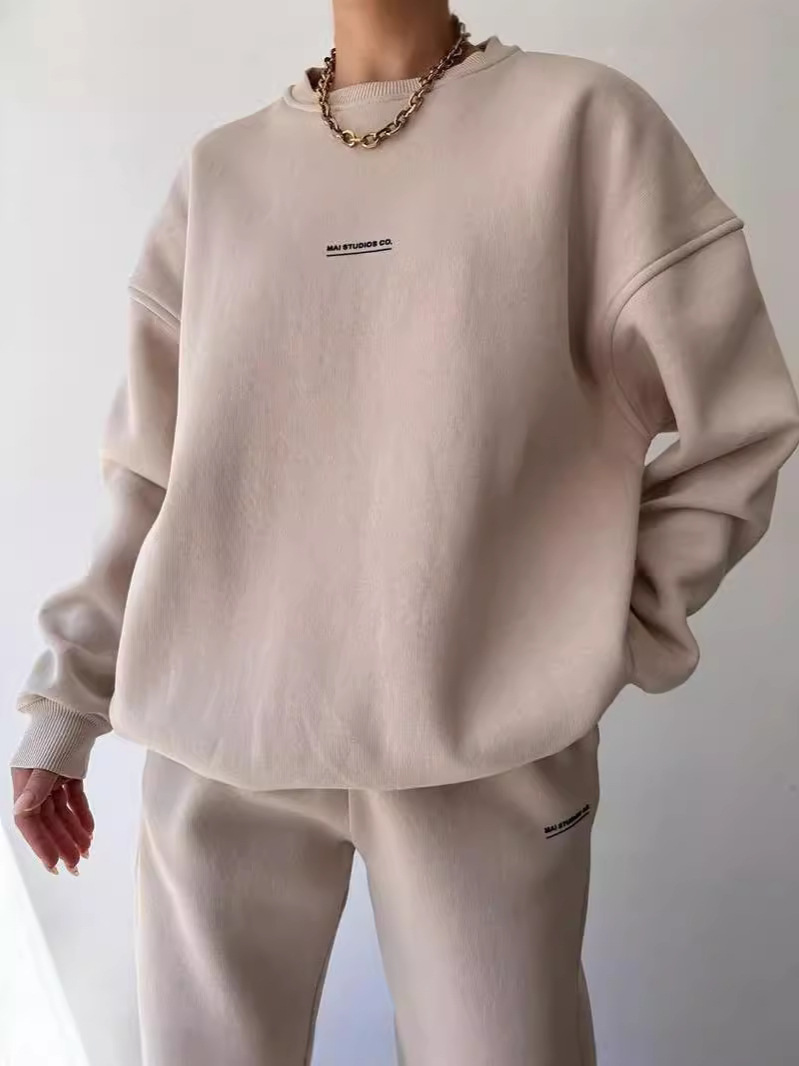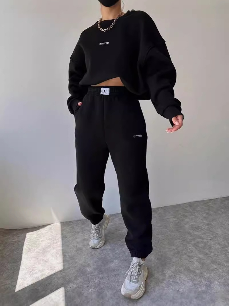 Churchf Churchf New Suit Of Long Sleeve Round Collar Casual Hoodie Elastic Sweatpants Two-Piece Set