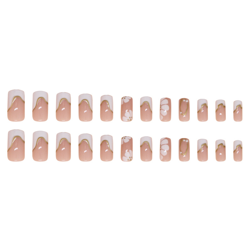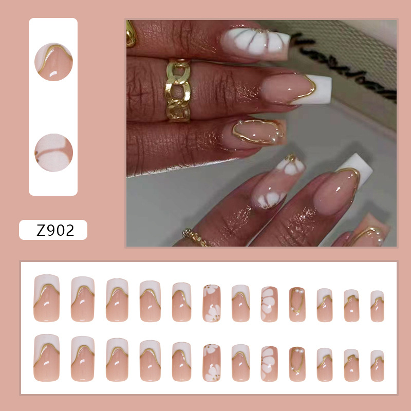 Churchf Churchf Patch Simple Removable Nail Gold Three-Dimensional Line Wear Nail French Flower Beautiful Nail Piece Diamond Style