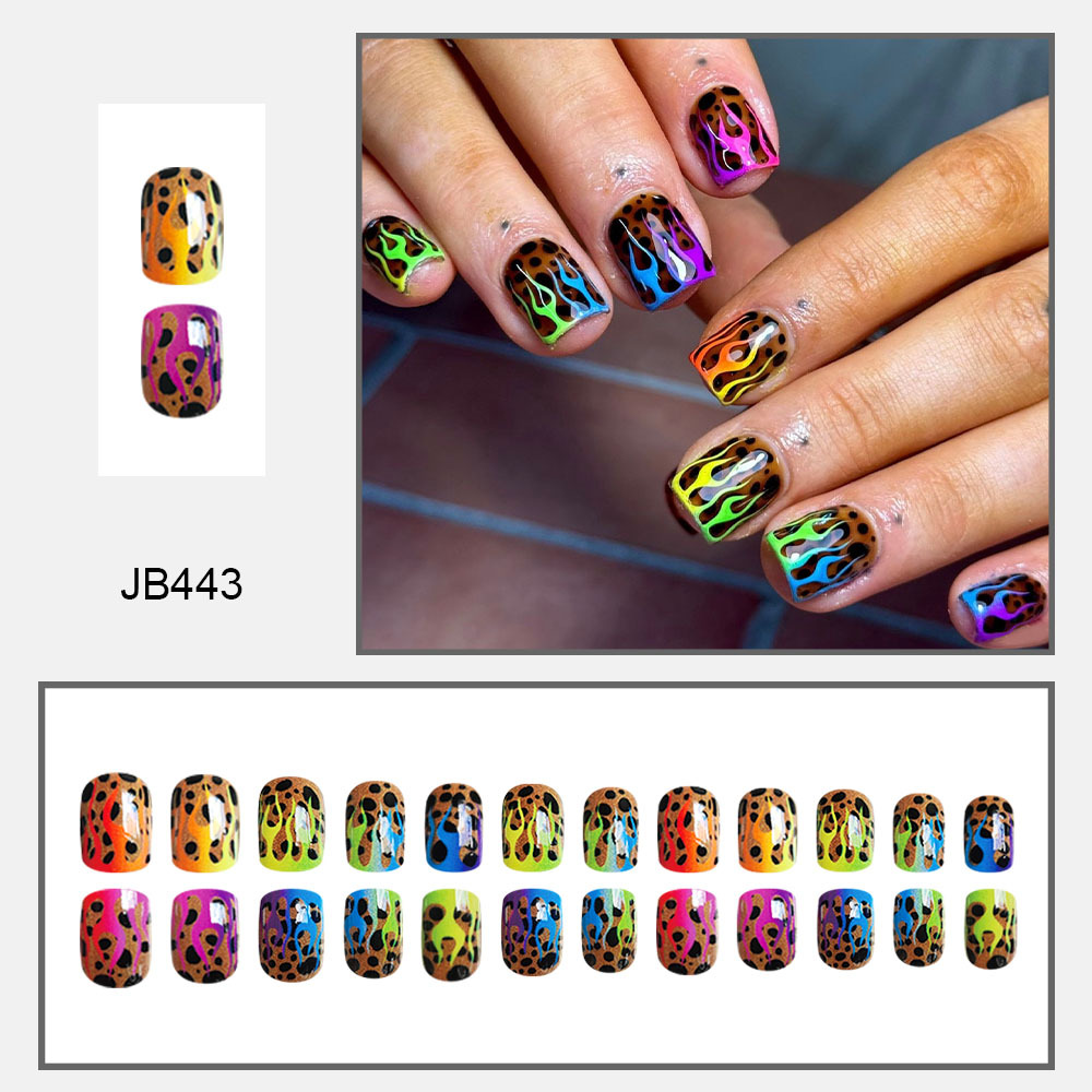 Churchf Churchf Print Gradient Color Flame Short Square Nail Bright Face Fake Nail Finished Wear Nail Removable Nail